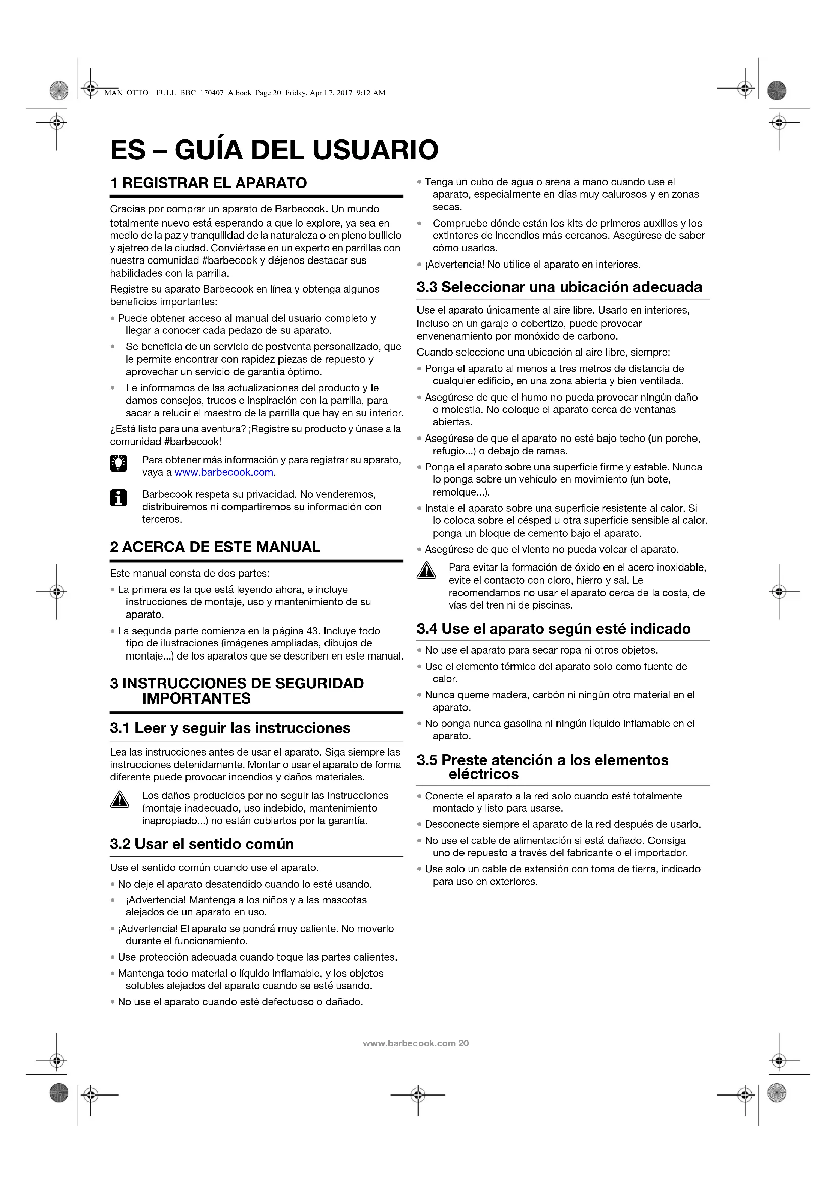 - Use solo un cable de extensión con toma de tierra, indicado para uso en exteriores. MAN_OTTO__FULL_BBC_170407_A.book Page 20 Friday, April 7, 2017 9:12 AMwww.barbecook.com 21