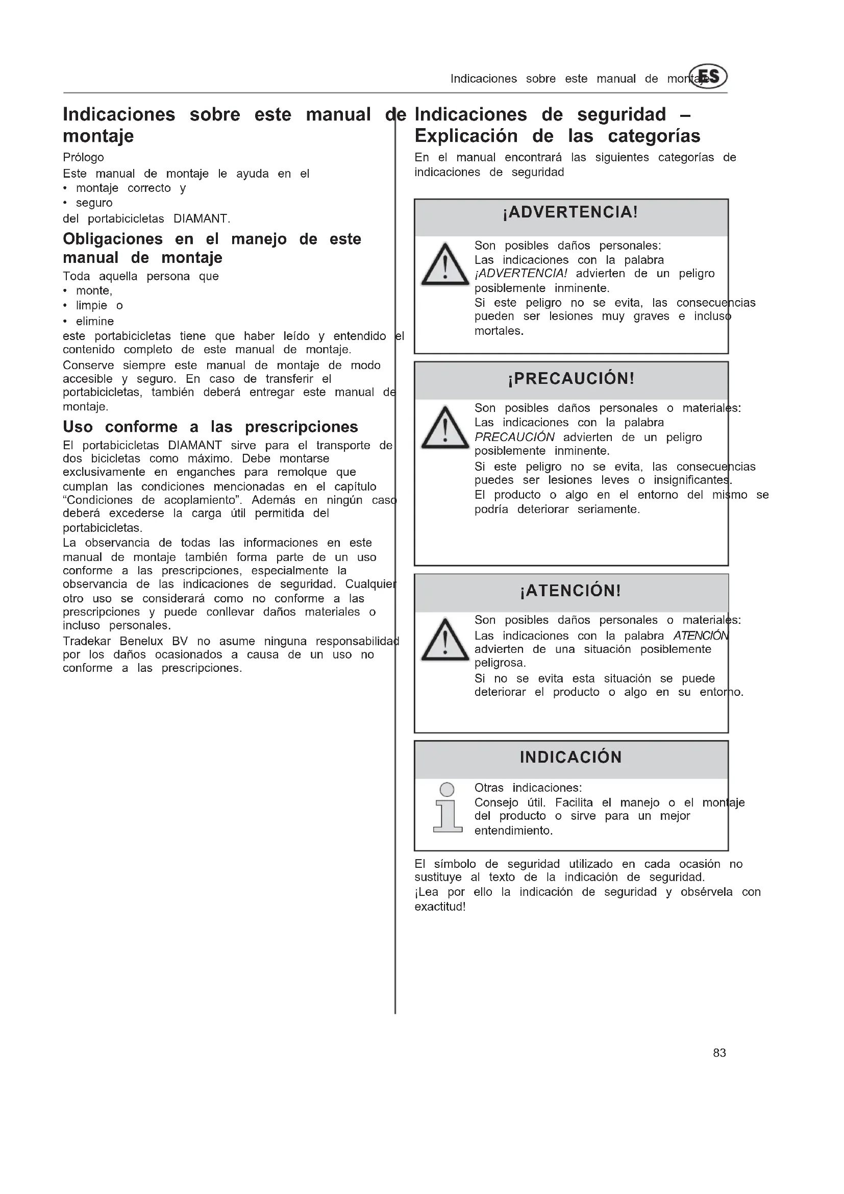 Conserve siempre este manual de montaje de modo accesible y seguro. En caso de transferir el portabicicletas, también deberá entregar este manual de montaje.