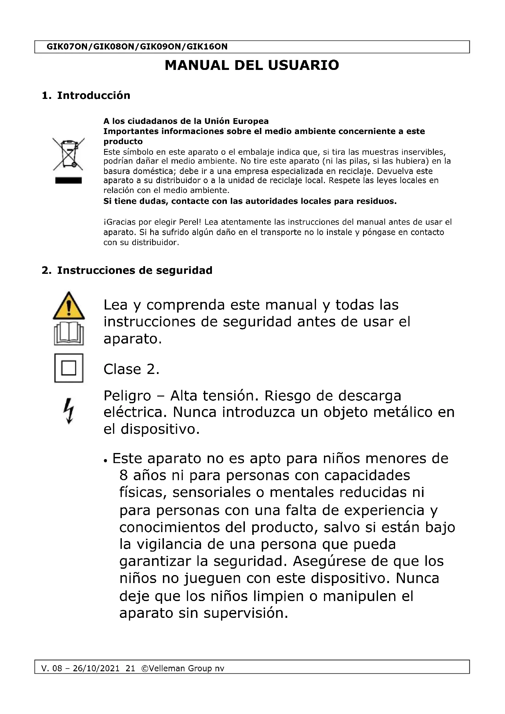Encuentra gratis el manual del aparato GIK08ON Perel en formato PDF.