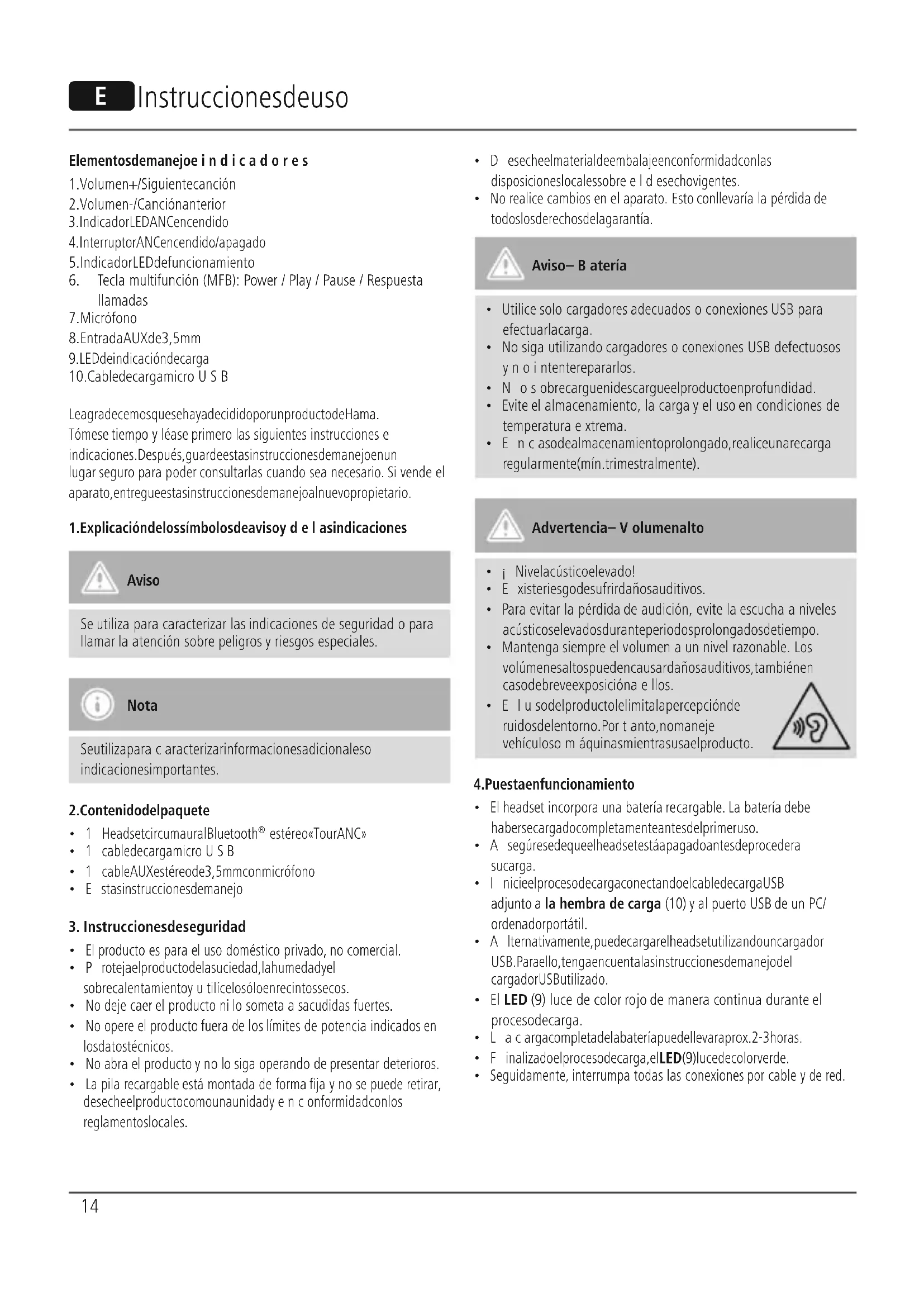 - Paraevitar la pérdida de audición, evite la escucha aniveles acústicos elevados durante periodos prolongados de tiempo.