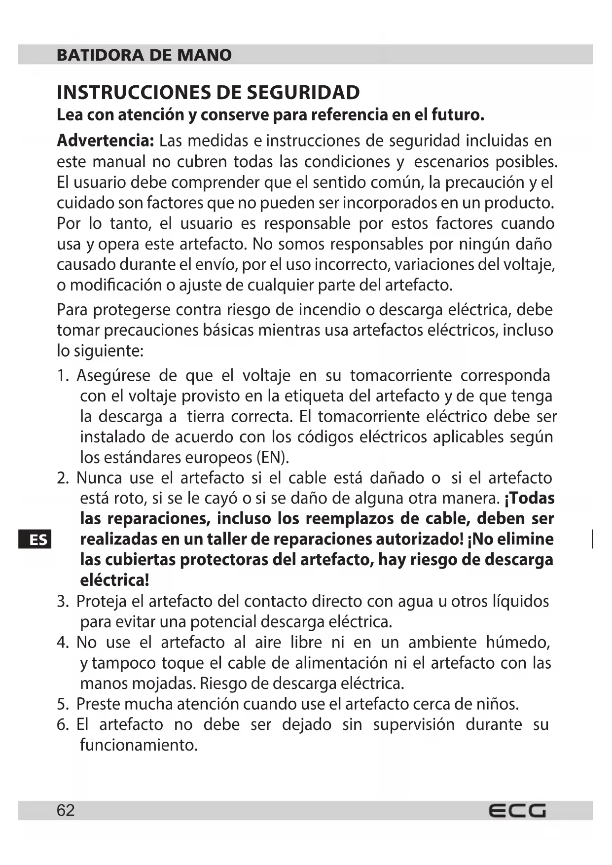 RS 200 - Batidora de mano ECG - Manual de uso y guía de instrucciones gratis