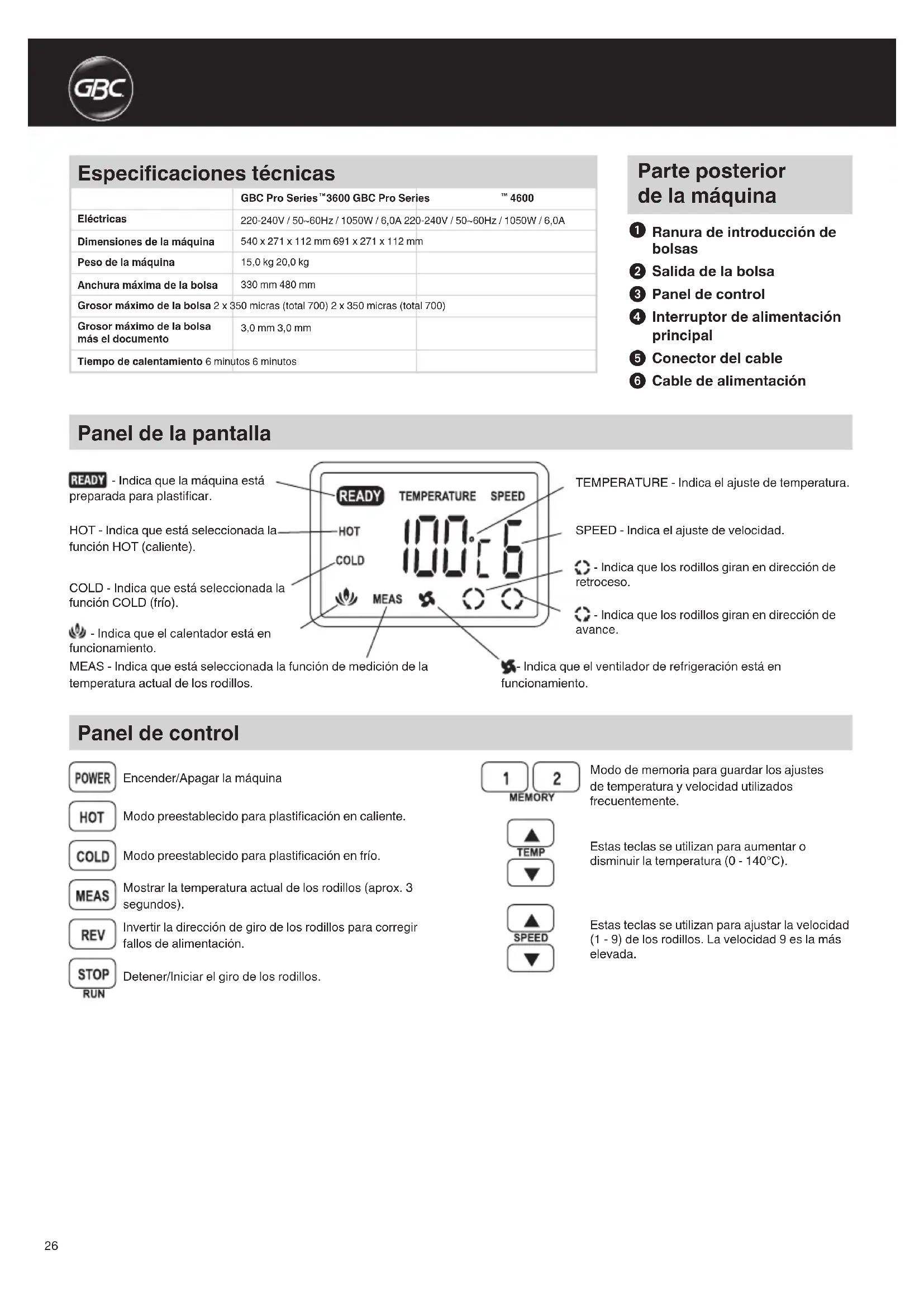 Encuentra gratis el manual del aparato Proseries 3600 GBC en formato PDF.