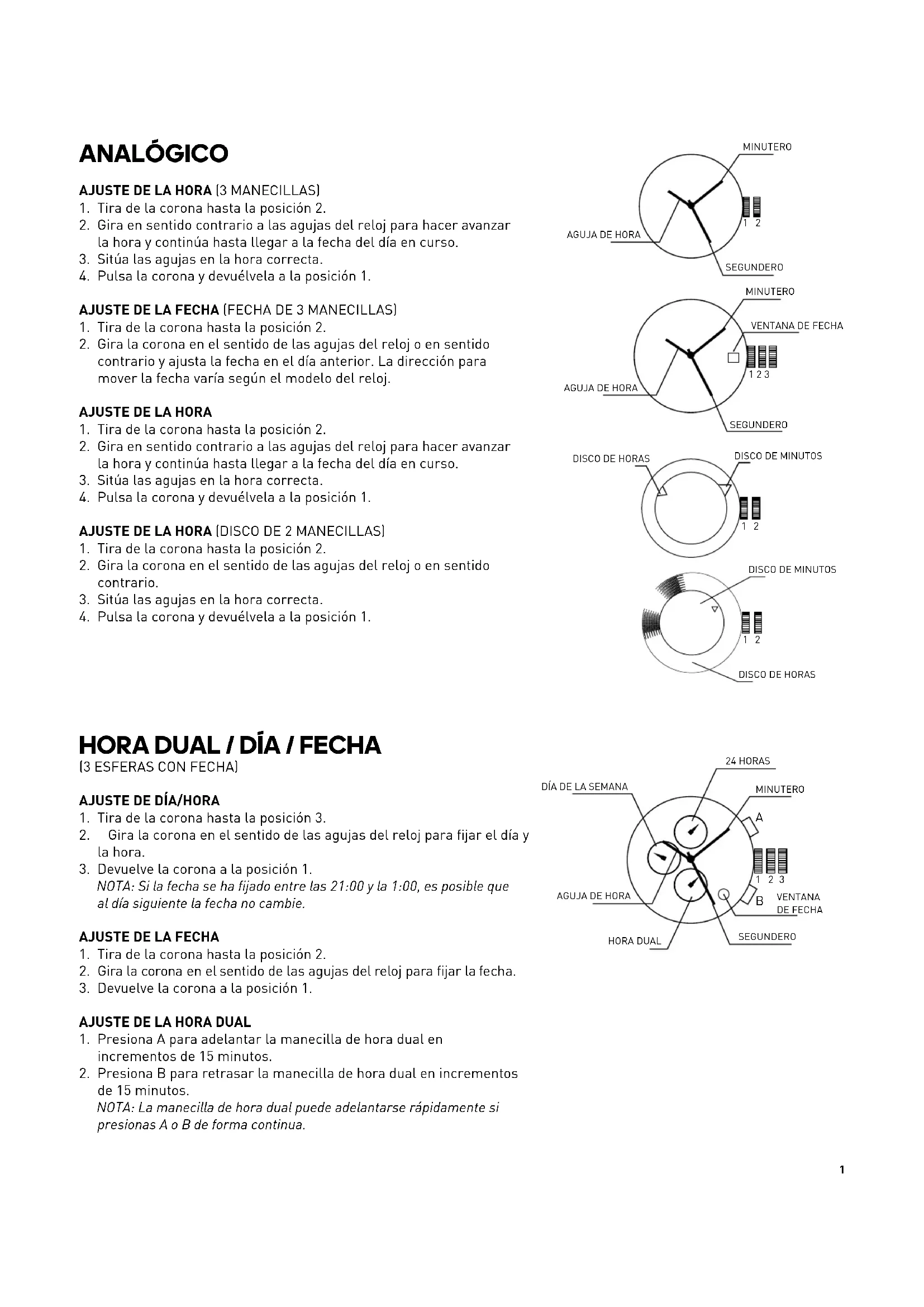 AJUSTE DE LA HORA (DISCO DE 2 MANECILLAS)