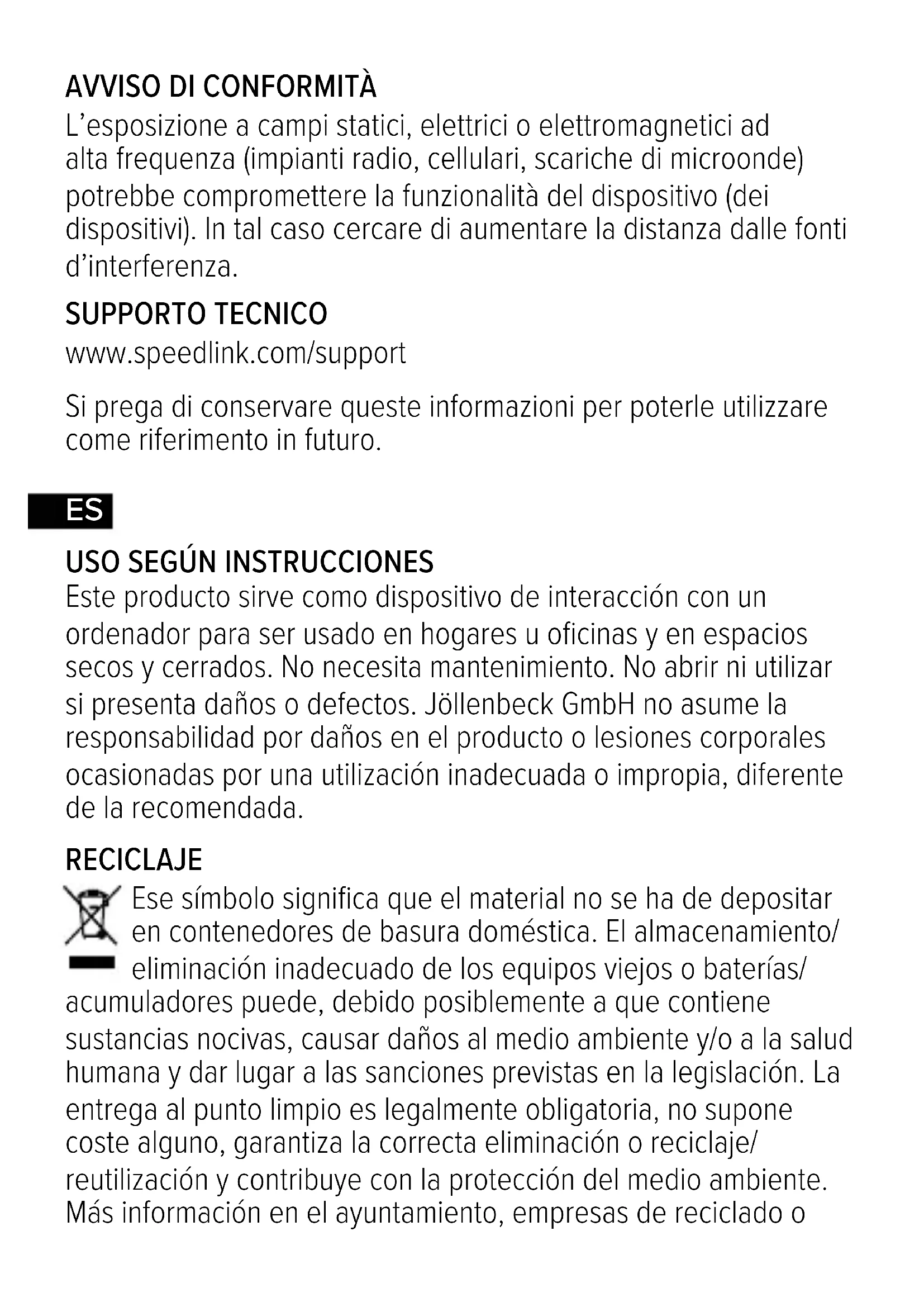 www.speedlink.com/support Conserve esta información para consultarla en el futuro.