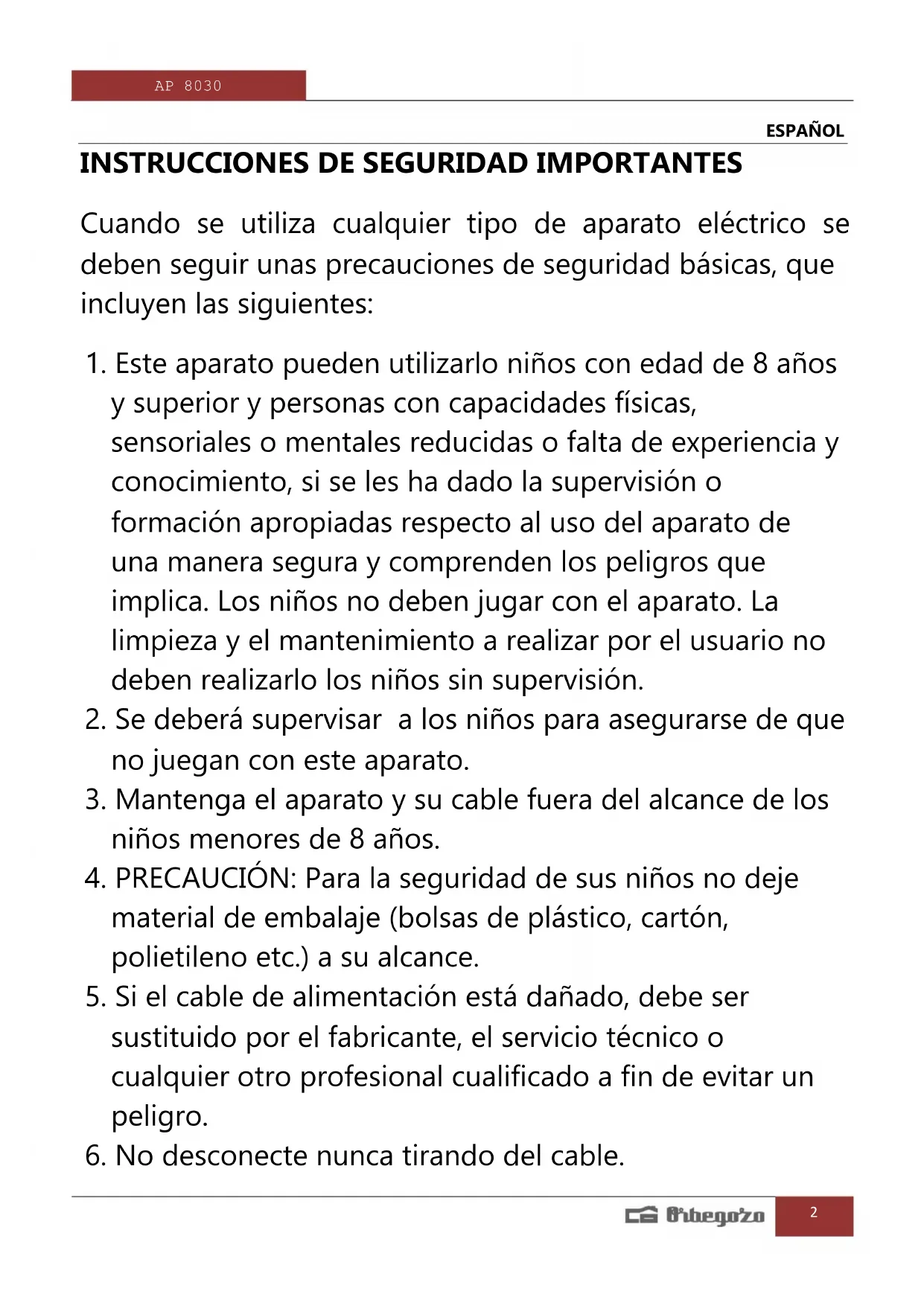 Encuentra gratis el manual del aparato AP 8030 Orbegozo en formato PDF.