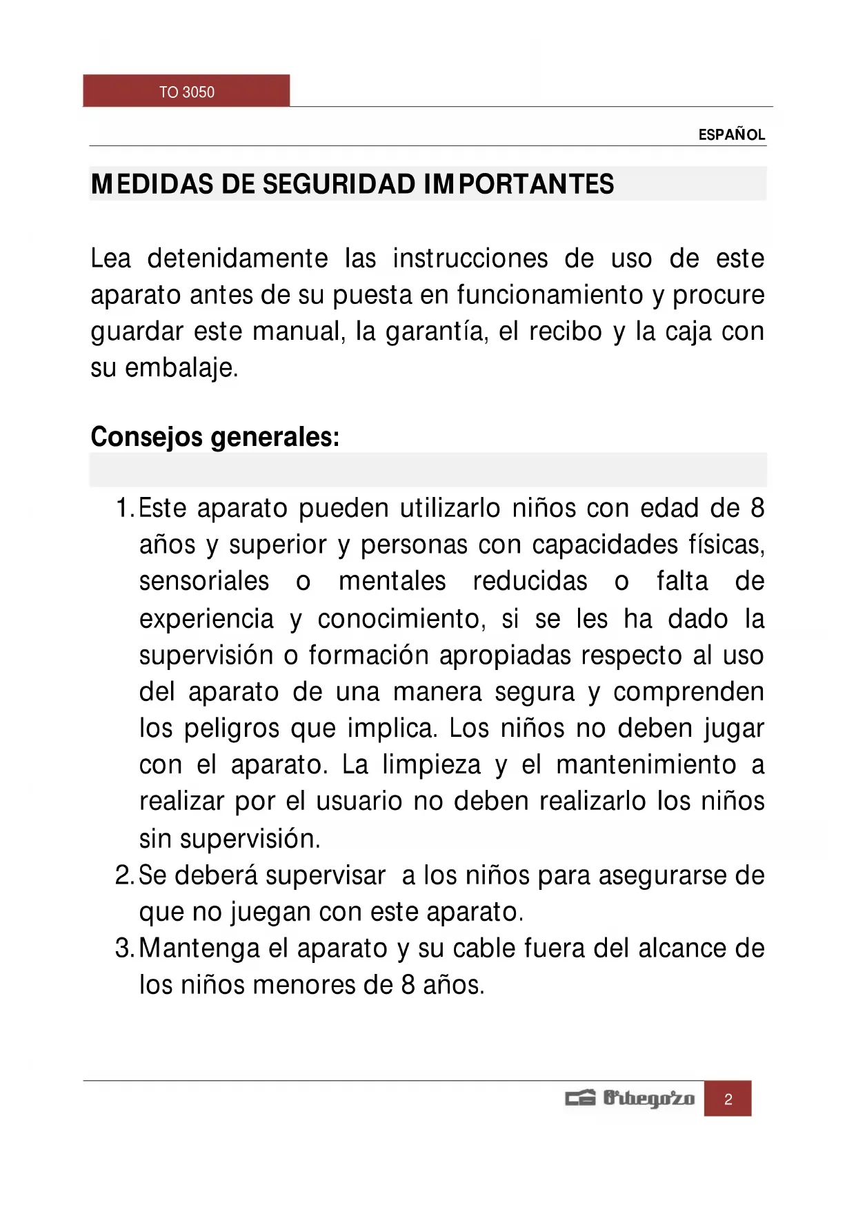 MANUAL DE USUARIO TO 3050 Orbegozo