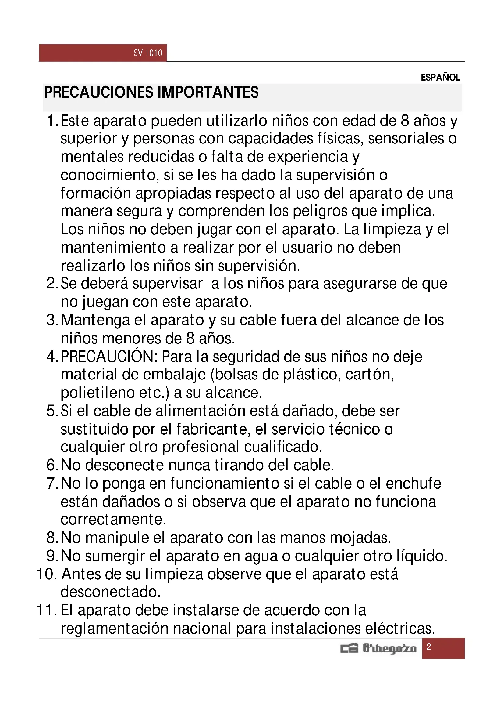 MANUAL DE USUARIO SV 1010 Orbegozo