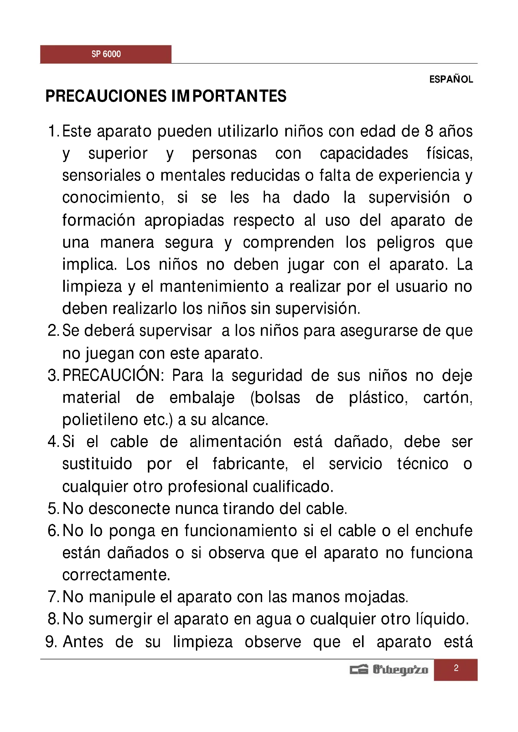 MANUAL DE USUARIO SP 6000 Orbegozo