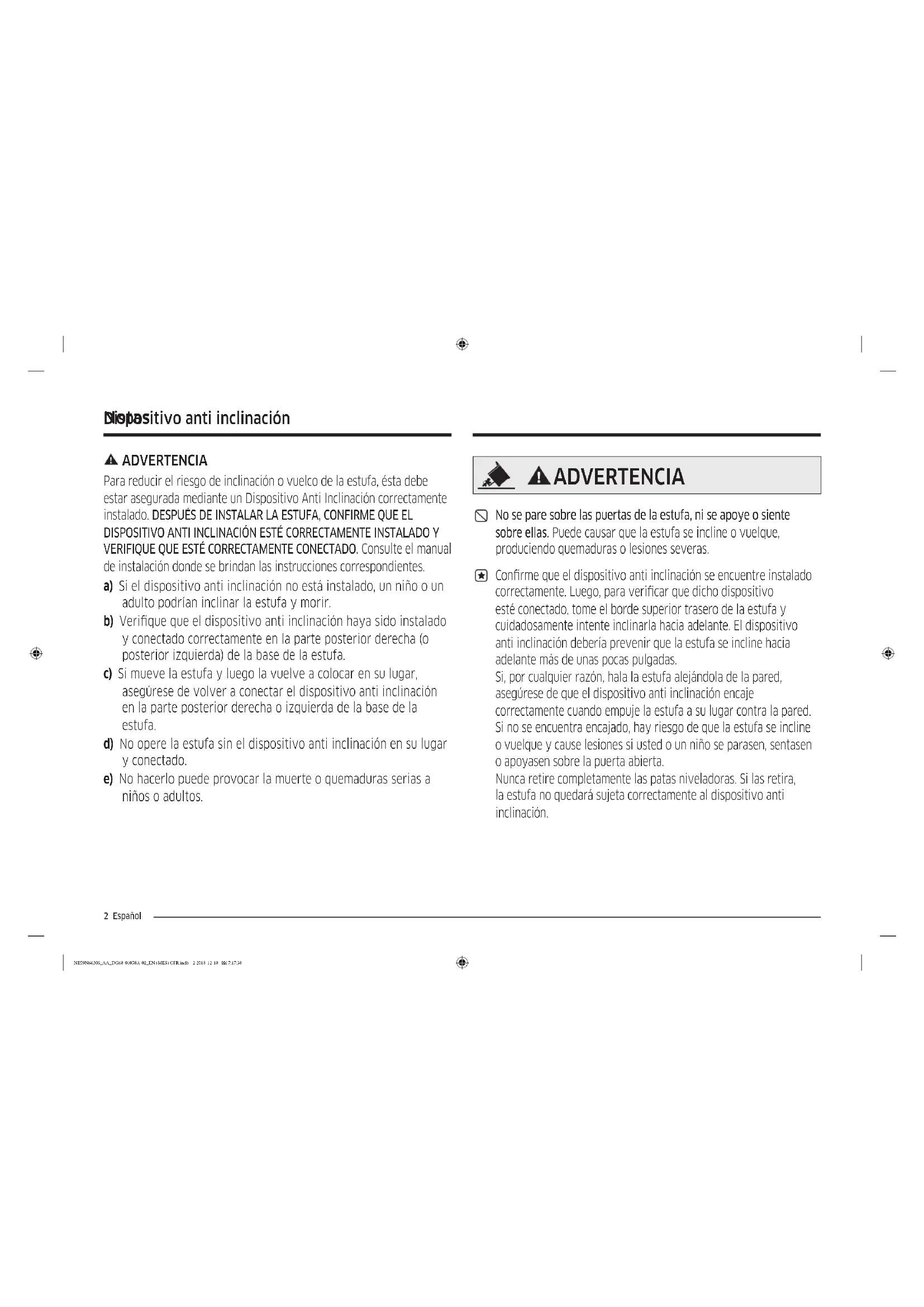 - No se apoye sobre la estufa ya que podría girar las perillas de control sin darse cuenta. NE59N6630S_AA_DG68-01050A-02_EN+MES+CFR.indb 5 2018-12-18 7:17:386 Español Instrucciones de seguridad importantes Instrucciones de seguridad importantes