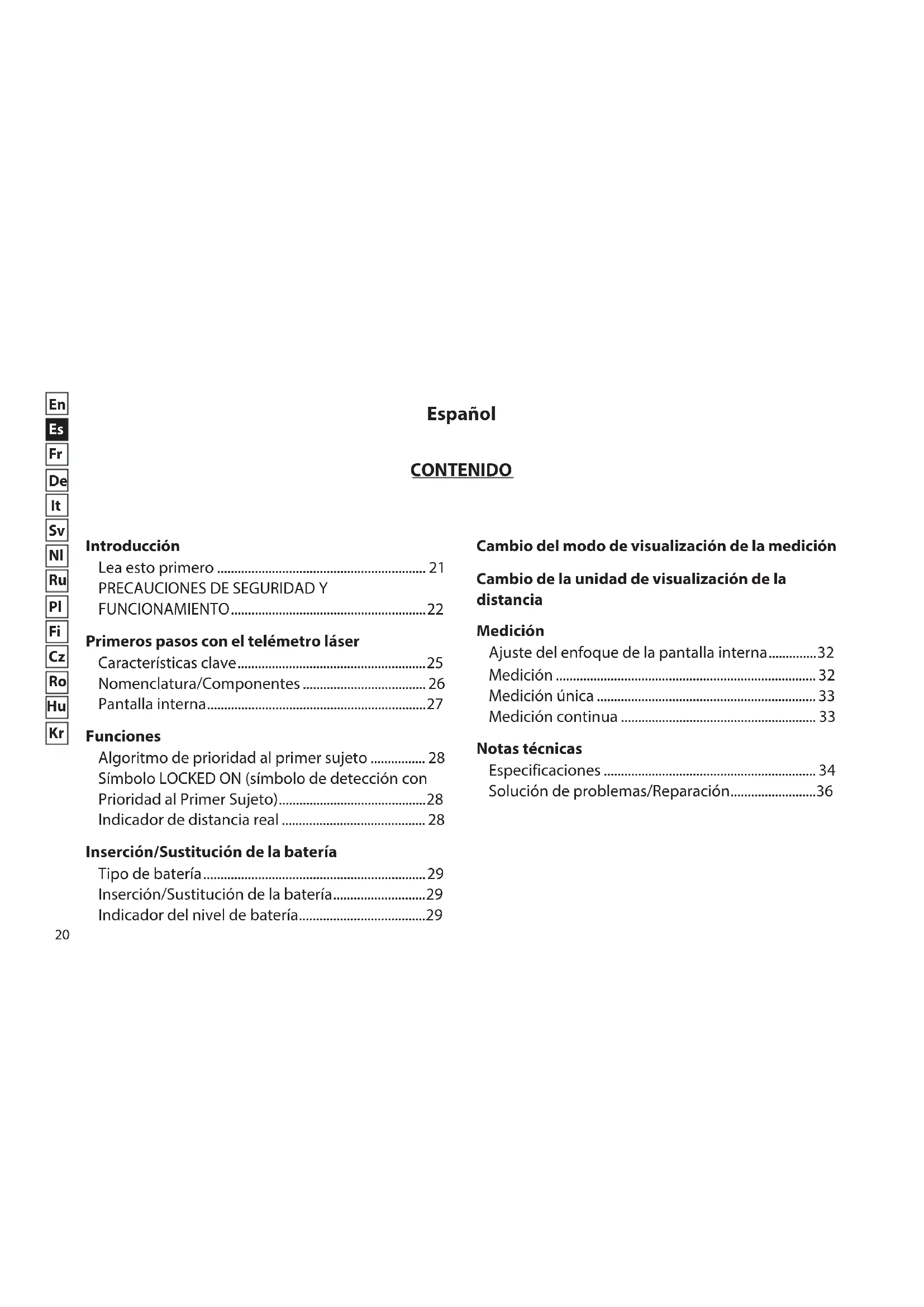 - Primeros pasos con el telémetro láser Características clave p. 25