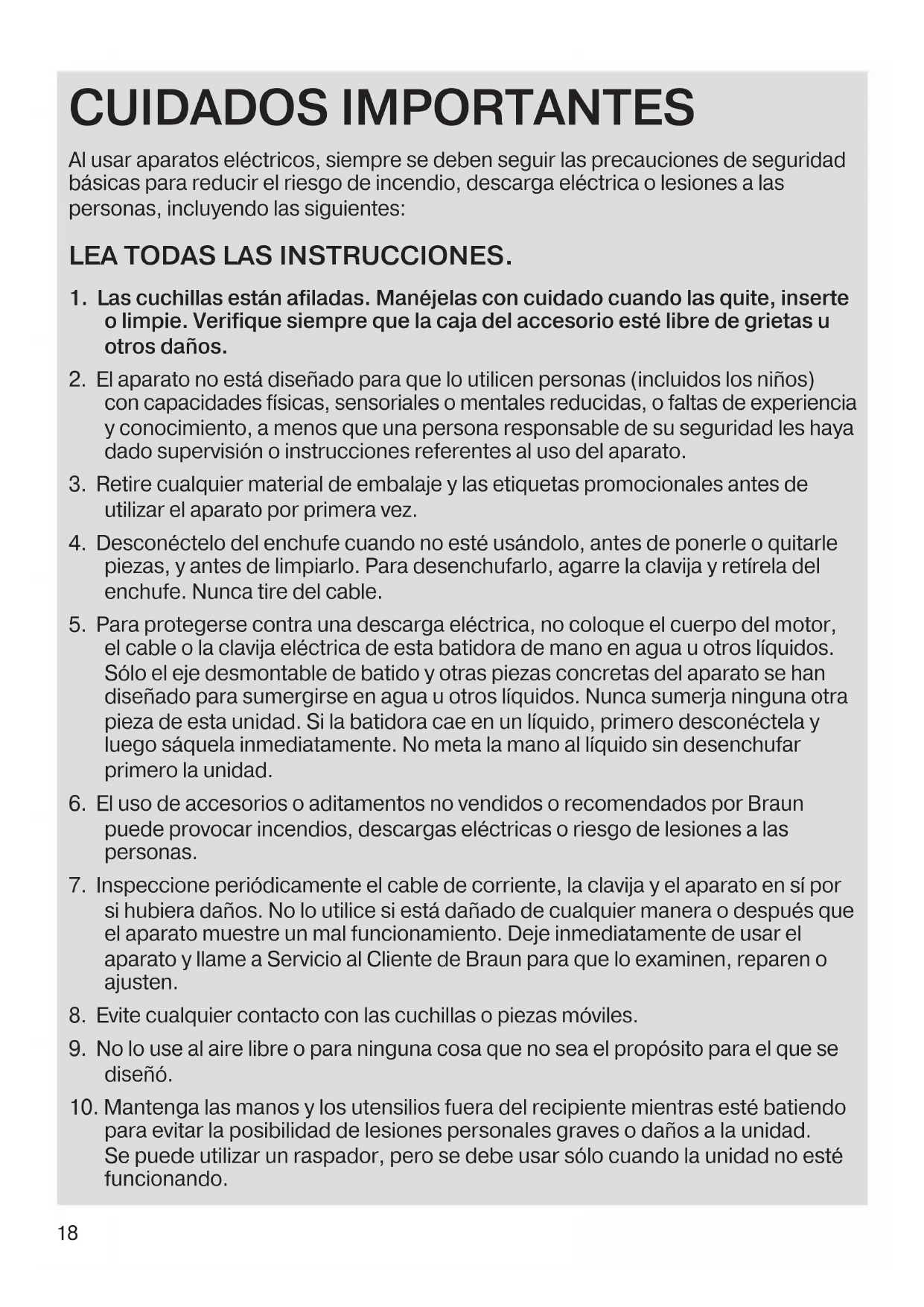 10. Mantenga las manos y los utensilios fuera del recipiente mientras esté batiendo