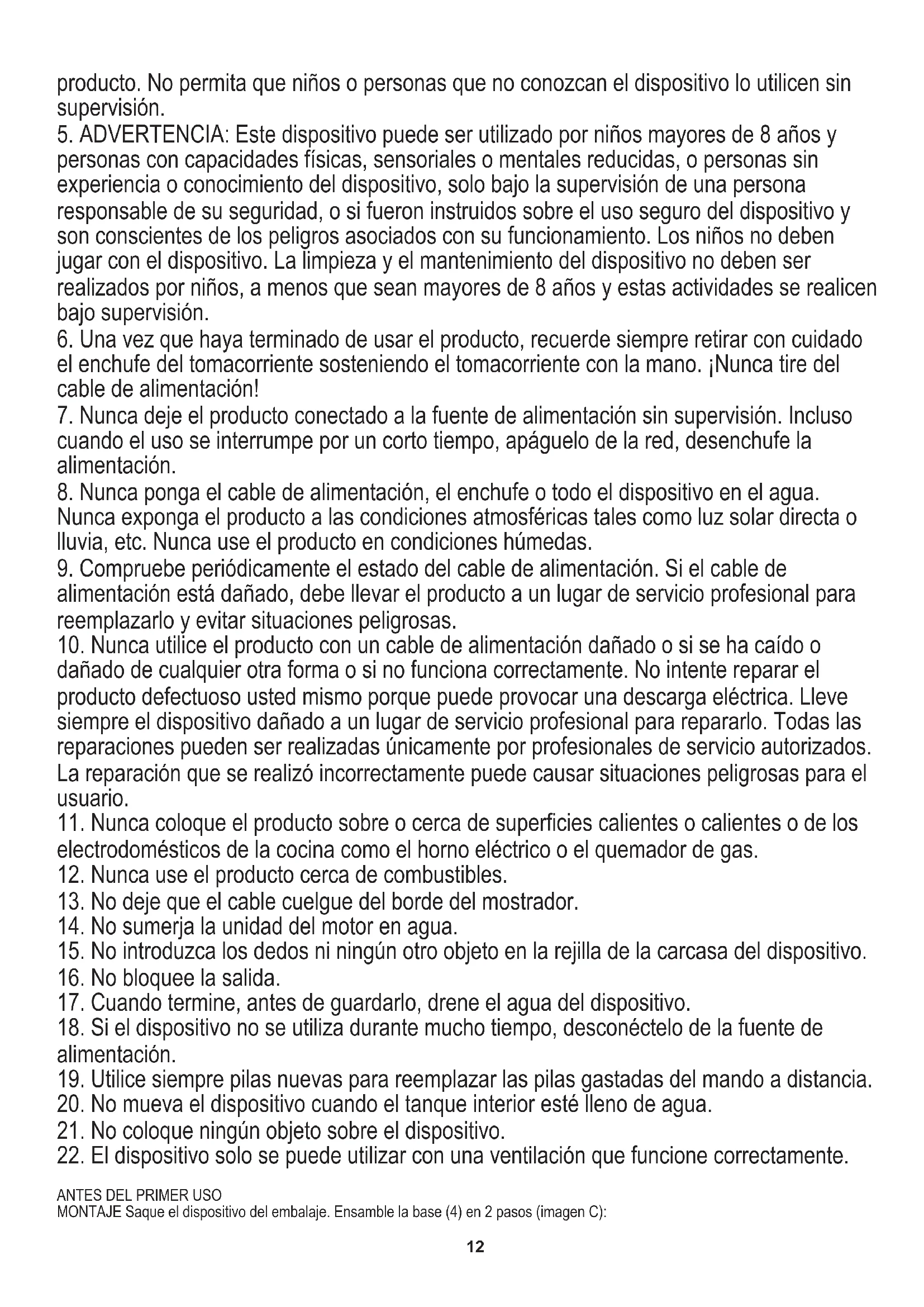 5. ADVERTENCIA: Este dispositivo puede ser utilizado por niños mayores de 8 años y