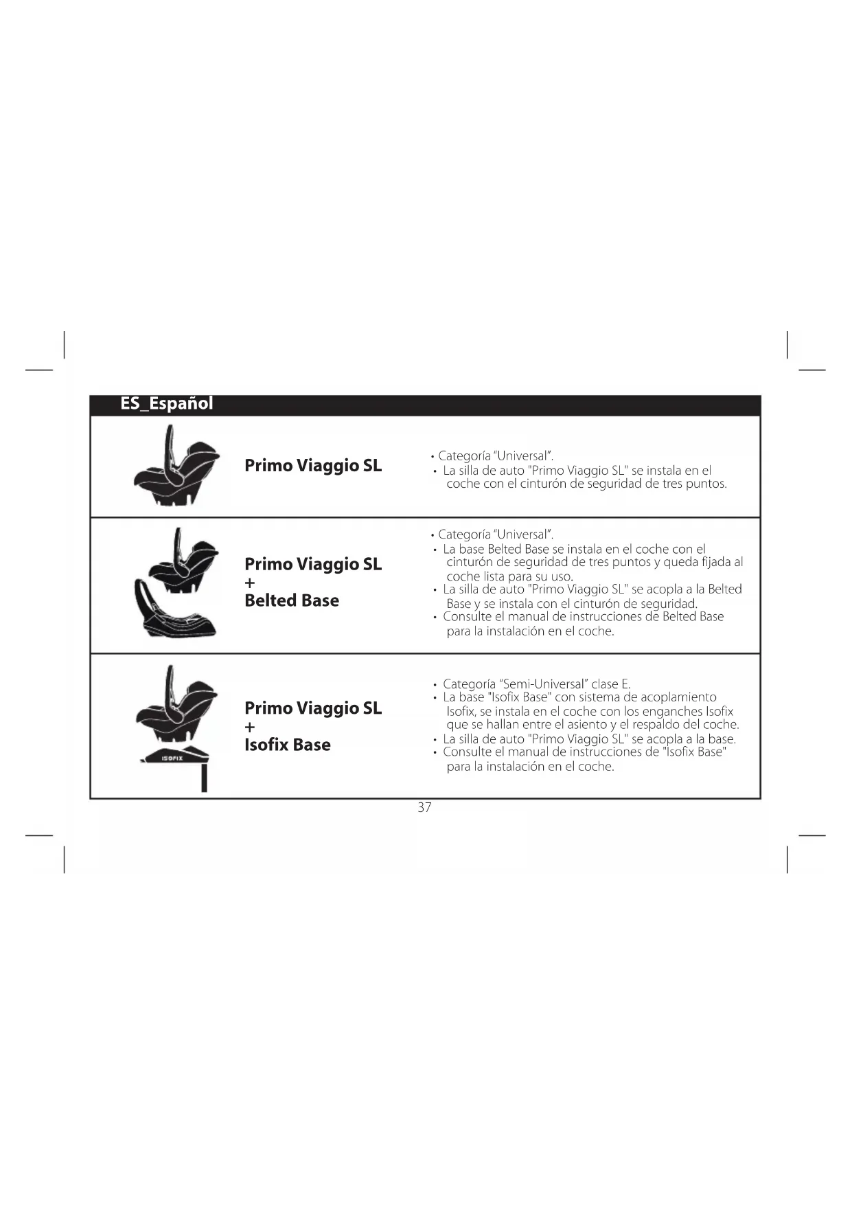 - Consulte el manual de instrucciones de "Isofix Base" para la instalación en el coche. ES_Español38 Le agradecemos haber elegido un producto Peg-Pérego. Características del producto