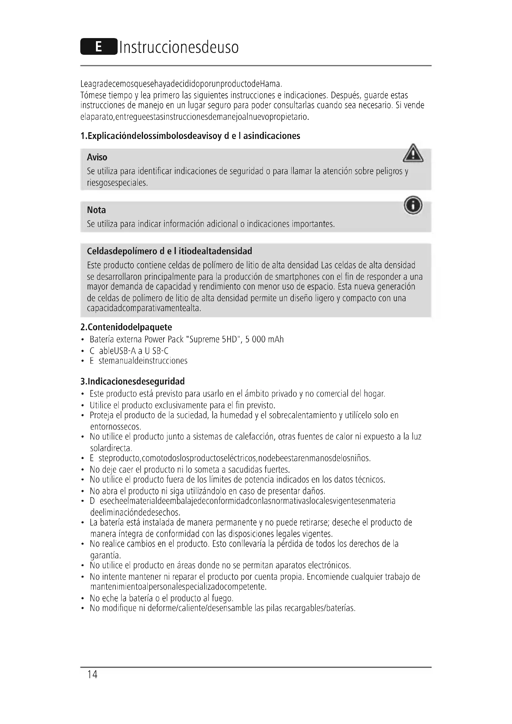 Supreme 5HD 00187290 - Batería portátil HAMA - Manual de uso y guía de instrucciones gratis