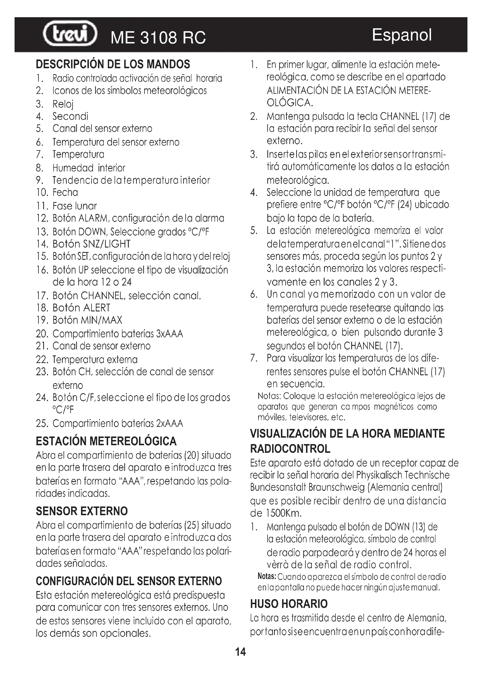 ME 3108 RC - Estación meteorológica Trevi - Manual de uso y guía de instrucciones gratis