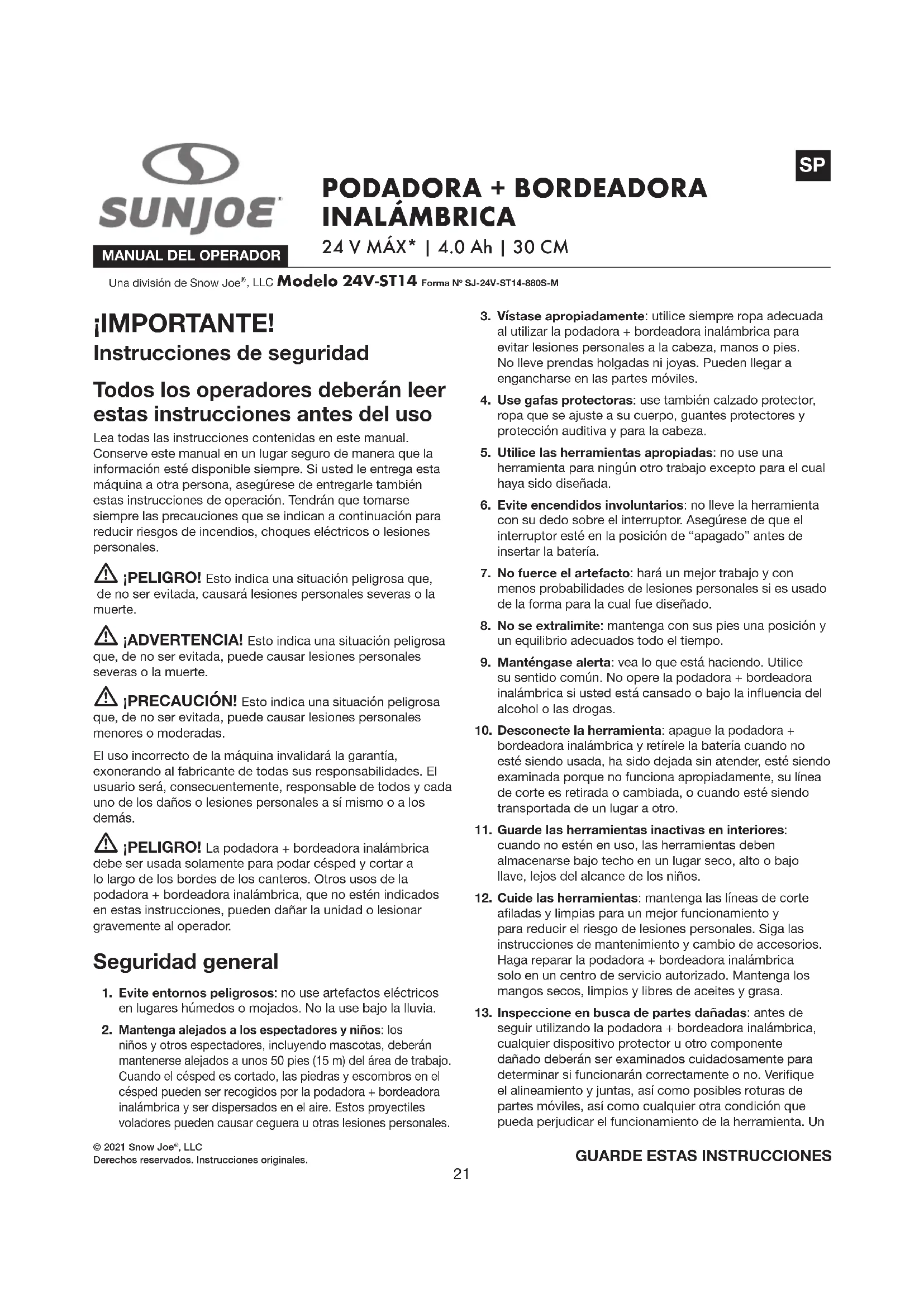 MANUAL DE USUARIO 24VST14 Sun Joe