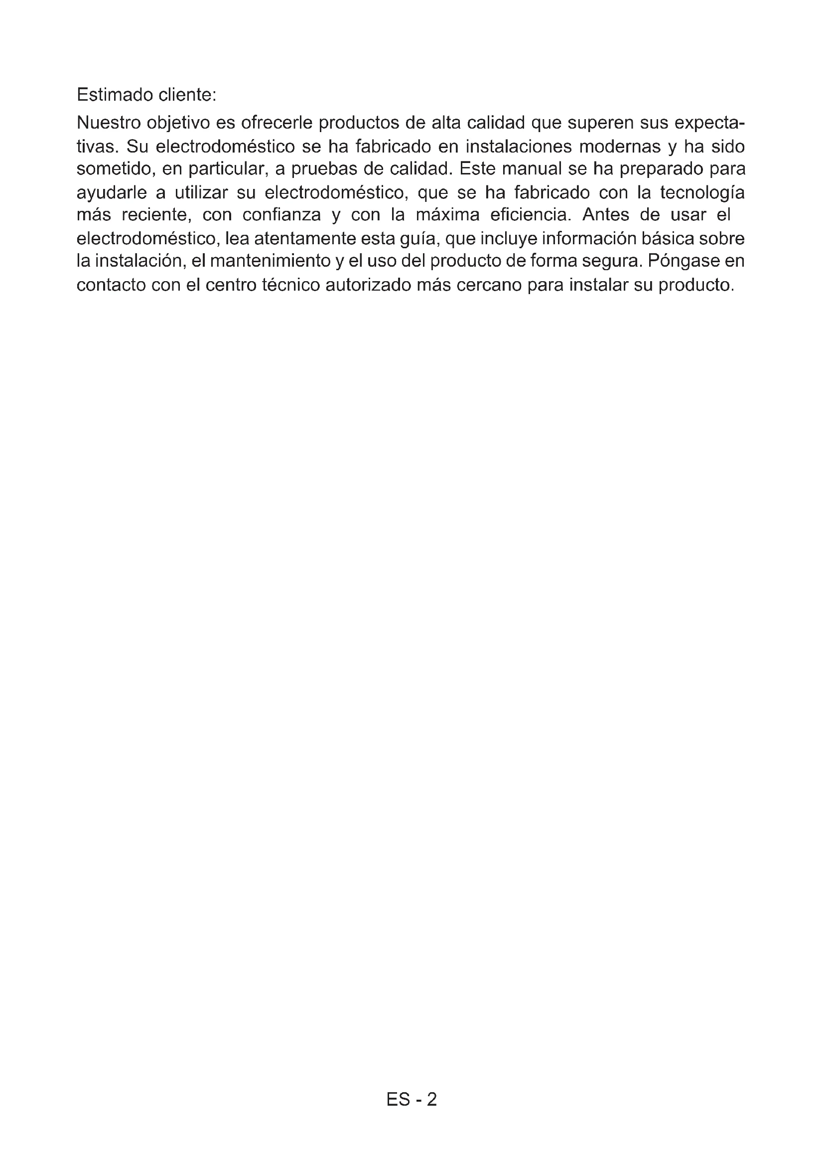 - No utilice el electrodoméstico an- tes de instalarlo completamente.