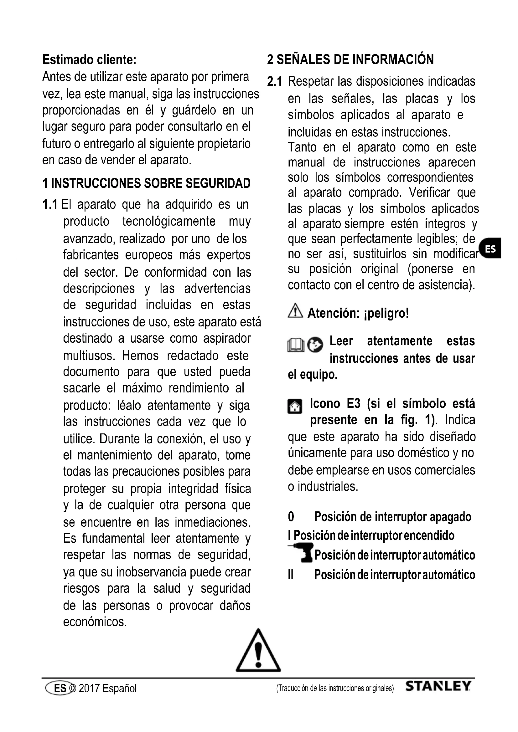 Descarga las instrucciones para tu Aspiradora en formato PDF gratis! Encuentra tus instrucciones SXVC25PTDE - STANLEY y toma tu dispositivo electrónico nuevamente en la mano. En esta página están publicados todos los documentos necesarios para el uso de su dispositivo. SXVC25PTDE de la marca STANLEY.