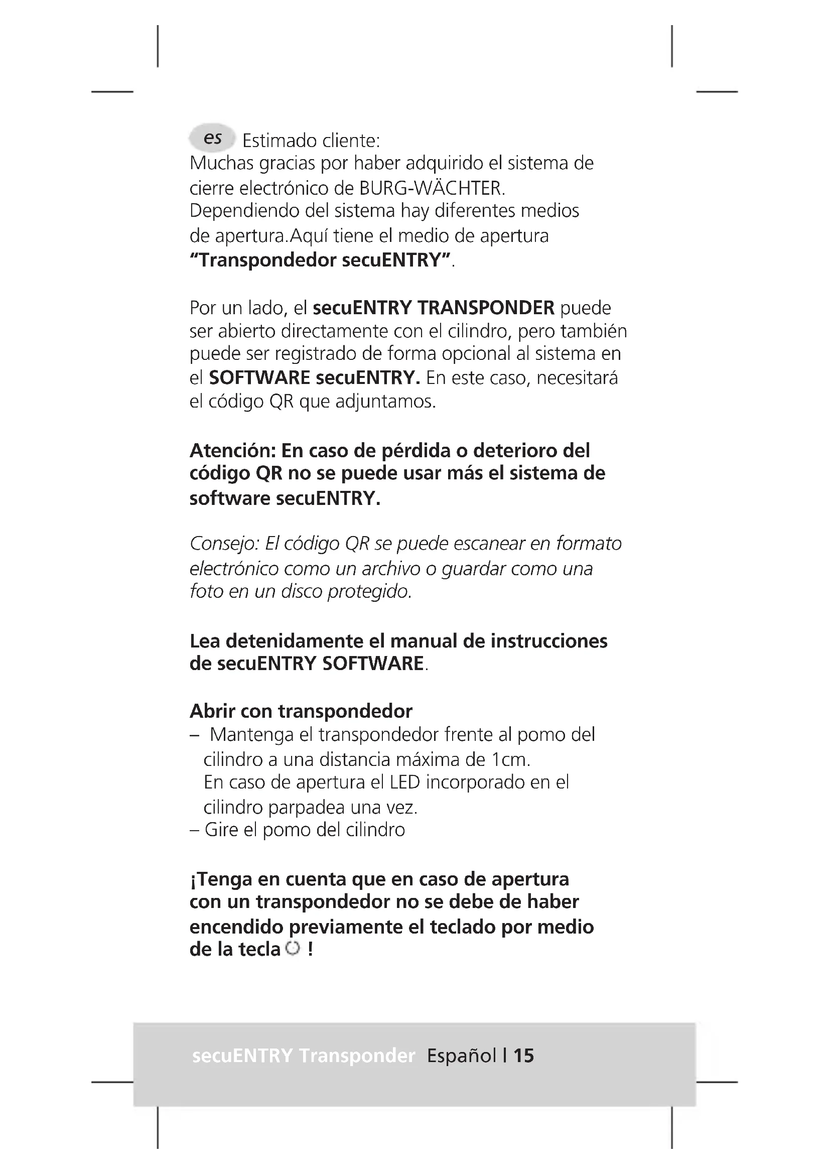 MANUAL DE USUARIO Entry 5710 Transponder Burg Wächter