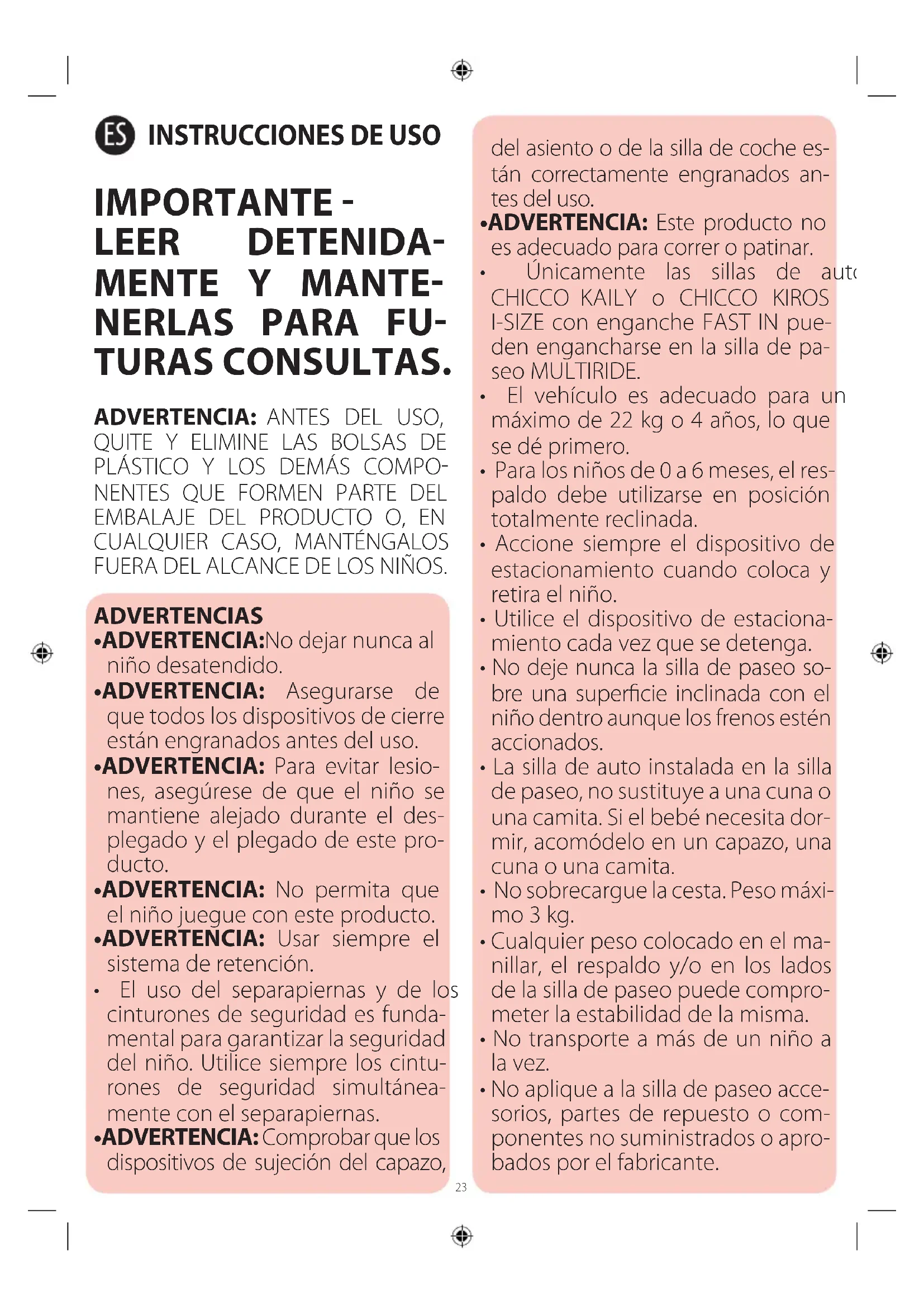 Descarga las instrucciones para tu Paseante en formato PDF gratis! Encuentra tus instrucciones Mutliride - CHICCO y toma tu dispositivo electrónico nuevamente en la mano. En esta página están publicados todos los documentos necesarios para el uso de su dispositivo. Mutliride de la marca CHICCO.