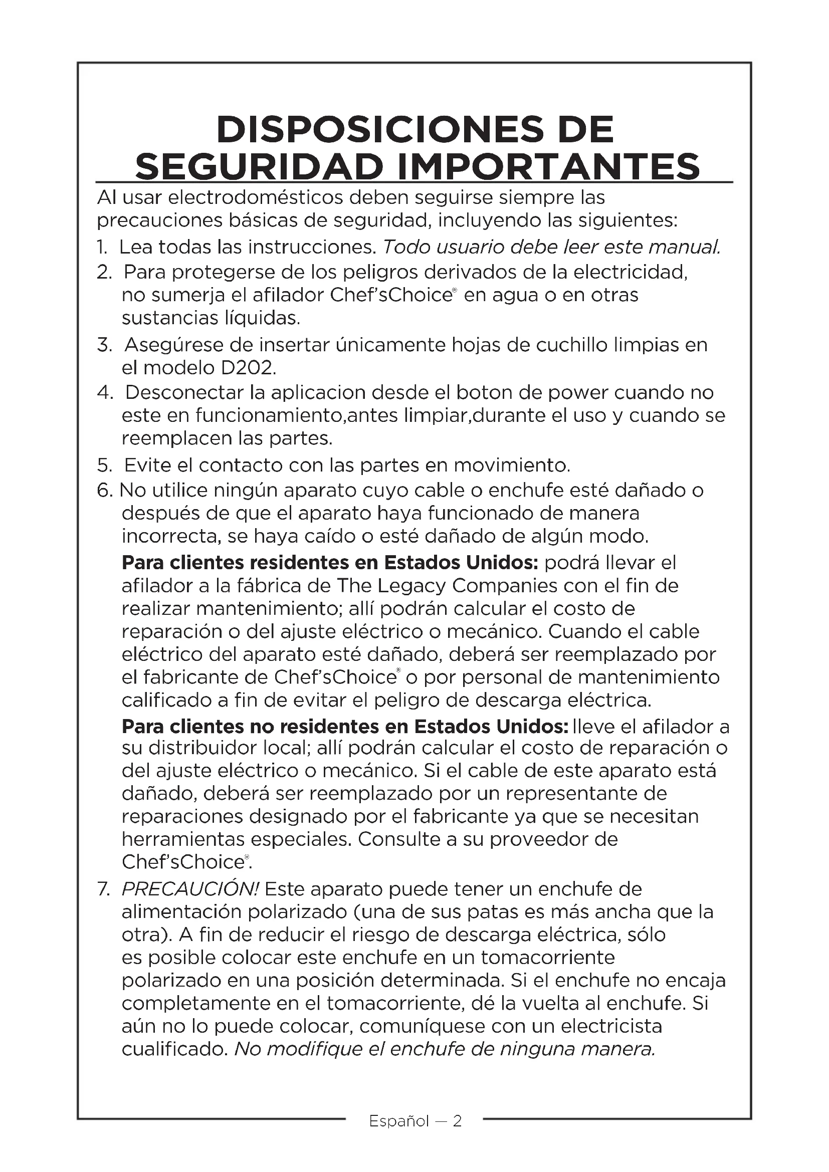 MANUAL DE USUARIO Diamond Hone D202 Chef's Choice
