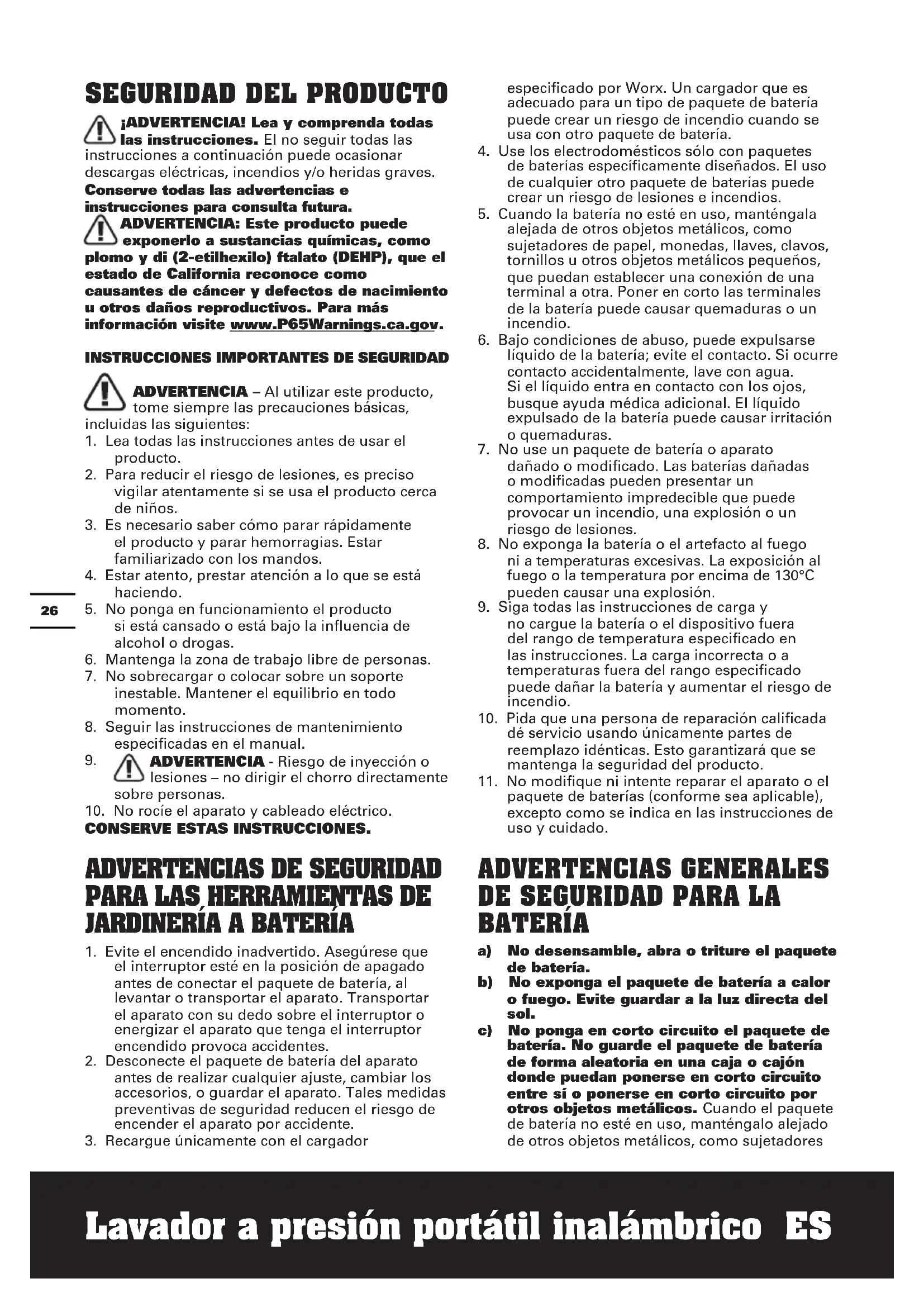 ADVERTENCIAS GENERALES DE SEGURIDAD PARA LA BATERIA