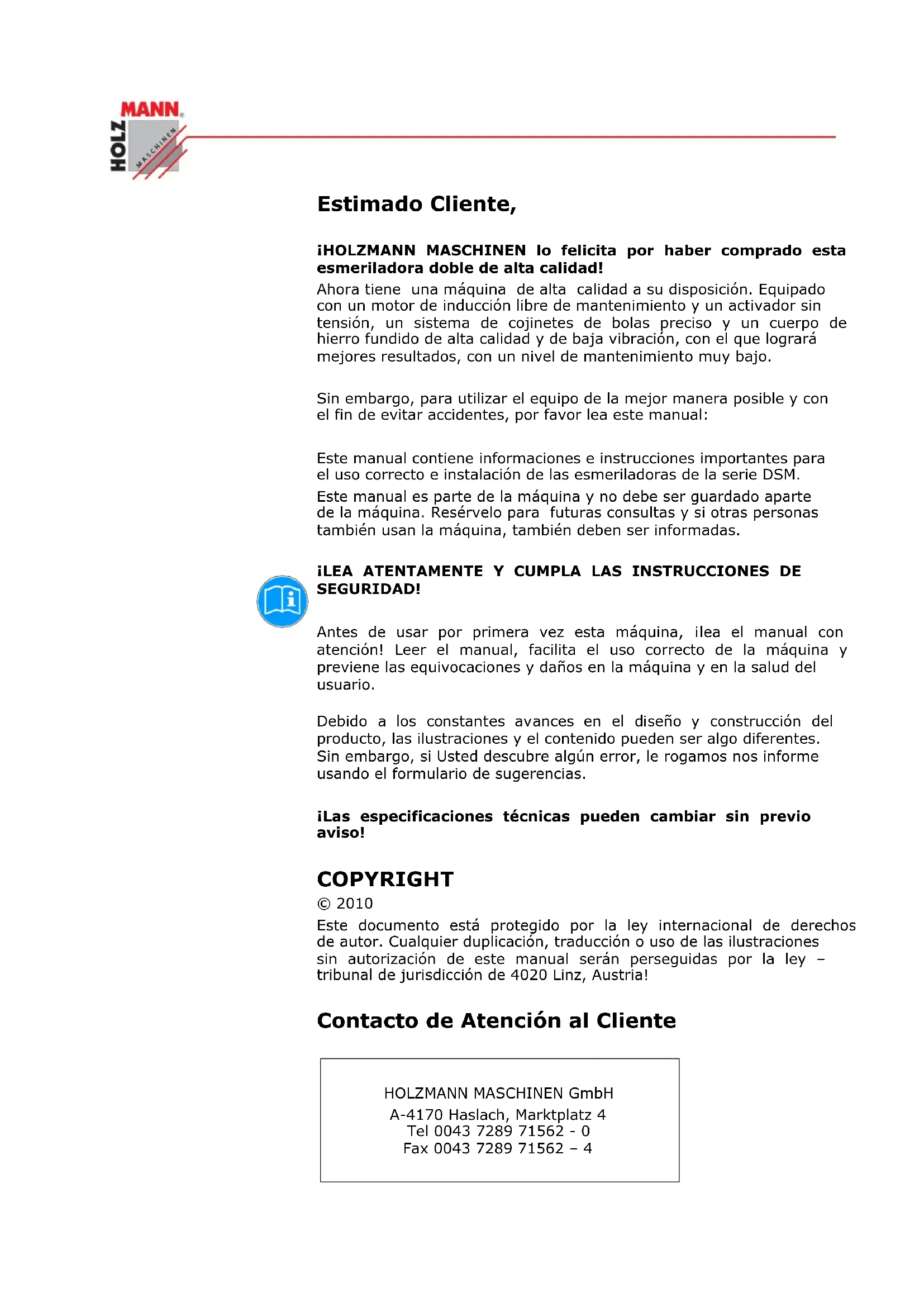 Este documento está protegado por la ley internacional dearethos de autor. Cualquier duplication, traducción o uso de las ilustraciones sin autorización de este manual serán perseguidas por la ley - tribunal de jurisDICción de 4020 Linz, Austria!