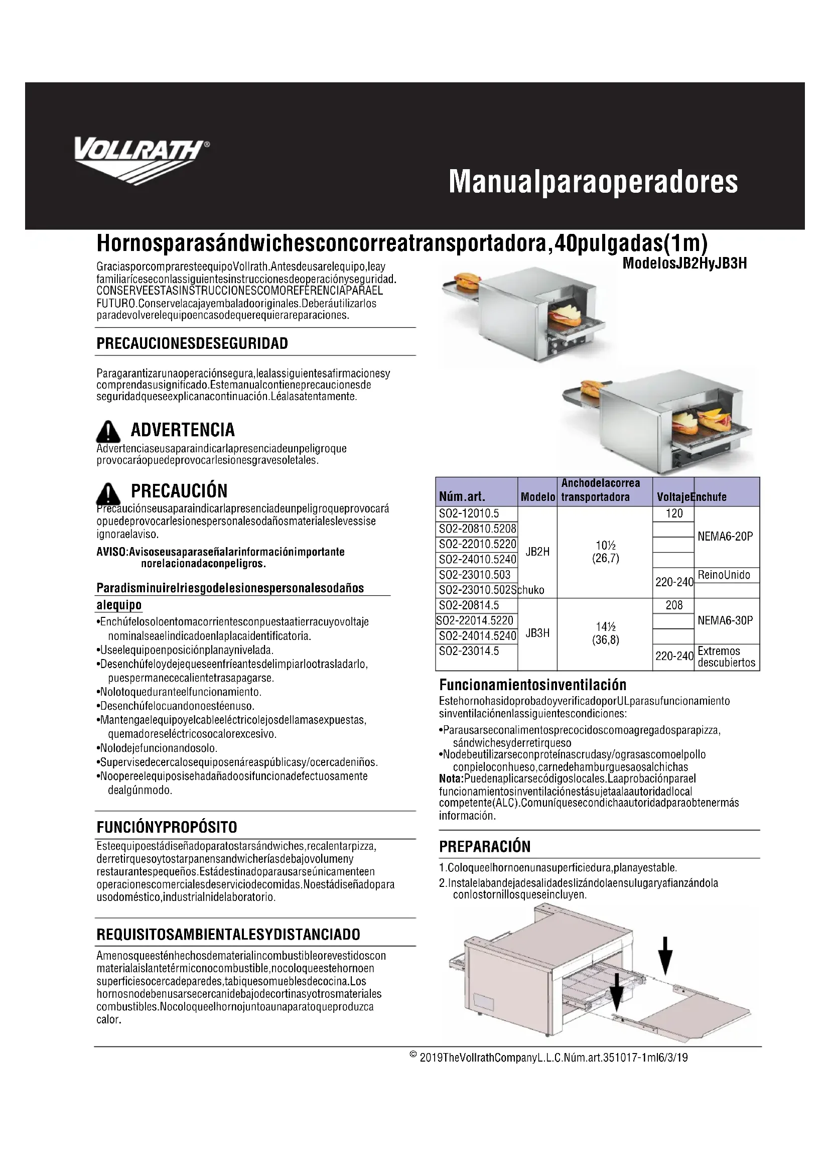 JB3H - Horno Vollrath - Manual de uso y guía de instrucciones gratis