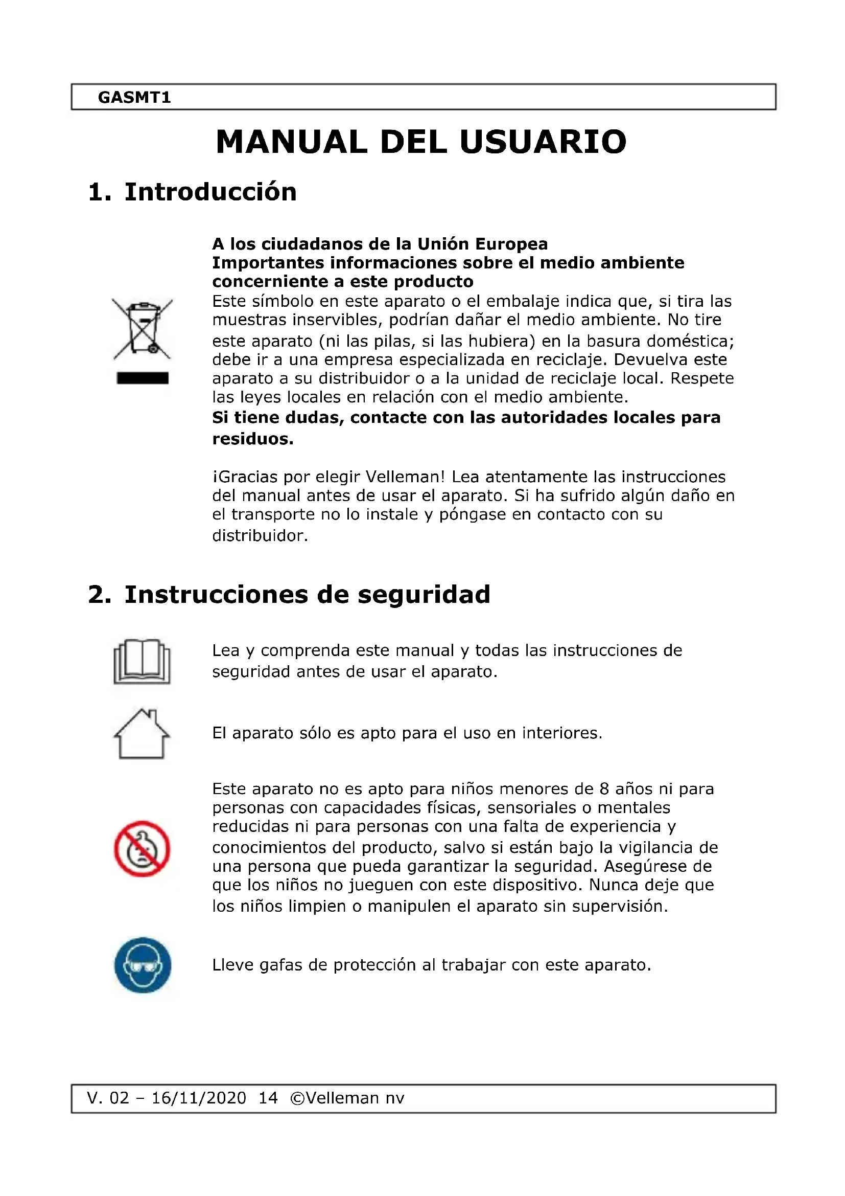 MANUAL DE USUARIO GASMT1 VELLEMAN