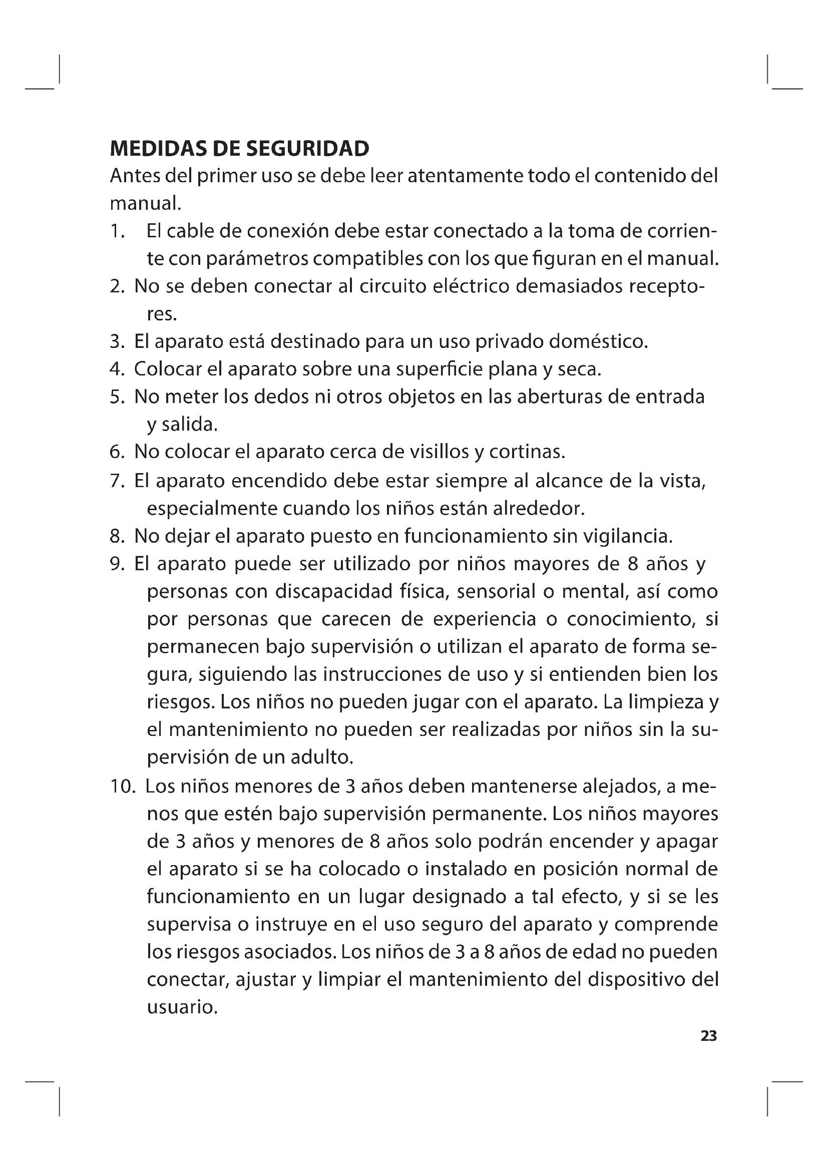 23. No tapar la boquilla del humidicador con el aparato encendido.