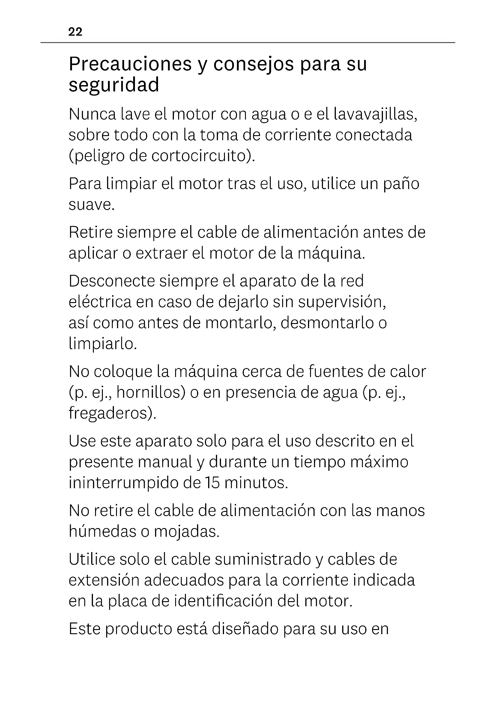 - Anleitung Befestigung des Motors an den Marcato-Maschinen Den Motor nahe an die Maschine bringen, wobei er um ca. 30° nach oben geneigt und der Zapfen in die Önung der Rollen eingeführt werden muss (Abb. 1 ). Den Motor schieben, bis er an der Seitenwand anliegt. Ihn schließlich um ca. 30° nach unten drehen, bis er ganz stabil ist. Vor dem Anschluss des Versorgungskabels sicherstellen, dass die Versorgungsspannung den Angaben auf dem Typenschild des Motors entspricht (Abb. 2 ). Um den Motor zu starten, den Schalter in Position I drücken (Abb. 3 - 4 ). Um den Motor mit intermittierendem Betrieb zu verwenden, ist die Taste auf Position II (PULSE) zu drücken. Den Motor um etwa 30° nach oben drehen und nach außen ziehen, um ihn von der Maschine zu entfernen (Abb. 5 ). DEUTSCH Garantie Marcato-Produkte werden aus den besten verfügbaren Materialien hergestellt und einer kontinuierlichen Qualitätsprüfung unterzogen. Aus diesem Grunde gewähren wir 2 Jahre Garantie auf Herstellungsfehler. Durch unsachgemäße oder andere als die in diesem Handbuch beschriebene Verwendung verursachte Schäden werden nicht von der Garantie abgedeckt. Weitere Informationen oder Rezepte sind unter www.marcato.it oder per E-Mail an info@marcato.it erhältlich. Diese Informationen stehen unter www.marcato.it zum Download bereit.22 Precauciones y consejos para su seguridad Nunca lave el motor con agua o e el lavavajillas, sobre todo con la toma de corriente conectada (peligro de cortocircuito). Para limpiar el motor tras el uso, utilice un paño suave. Retire siempre el cable de alimentación antes de aplicar o extraer el motor de la máquina. Desconecte siempre el aparato de la red eléctrica en caso de dejarlo sin supervisión, así como antes de montarlo, desmontarlo o limpiarlo. No coloque la máquina cerca de fuentes de calor (p. ej., hornillos) o en presencia de agua (p. ej., fregaderos). Use este aparato solo para el uso descrito en el presente manual y durante un tiempo máximo ininterrumpido de 15 minutos. No retire el cable de alimentación con las manos húmedas o mojadas. Utilice solo el cable suministrado y cables de extensión adecuados para la corriente indicada en la placa de identificación del motor. Este producto está diseñado para su uso en23ESPAÑOL entornos domésticos o en el interior de áreas de trabajo como: áreas equipadas para cocina en comercios, oficinas y otros lugares de trabajo, hoteles y otras instalaciones turísticas o cocinas de restaurantes. Cuando trabaje con máquinas equipadas con motor, evite usar corbatas, bufandas o collares largos. Recuerde también recoger el cabello. Las operaciones de limpieza y el mantenimiento no pueden ser realizadas por niños, a menos que estén bajo la estrecha supervisión de un adulto. Todas las reparaciones que involucren componentes eléctricos deben ser realizadas por personal cualificado. El personal no autorizado tiene prohibido acceder a las partes internas del motor. ¡ATENCIÓN! Este aparato puede ser utilizado por niños a partir de 8 años si están bajo supervisión o si han recibido instrucciones sobre el uso seguro del aparato y han entendido los peligros que conlleva. Las operaciones de limpieza y mantenimiento que pueden ser realizadas por el usuario no deben ser realizadas por niños, a menos que tengan más de 8 años y las realicen24 bajo supervisión. Mantenga el aparato y su cable fuera del alcance de los niños menores de 8 años. Los aparatos pueden ser utilizados por personas con capacidades físicas, sensoriales o mentales reducidas o con falta de experiencia y conocimiento si están bajo supervisión o han recibido instrucciones sobre el uso seguro del aparato y si han entendido los peligros que conlleva. Los niños no deben utilizar el dispositivo como un juguete. La imagen del contenedor con ruedas tachado indica que dentro de la Unión Europea el producto está sujeto a recogida especial al final de su ciclo de vida útil. No deseche estos productos con los residuos urbanos sin diferenciar.25 Material incluido en la caja