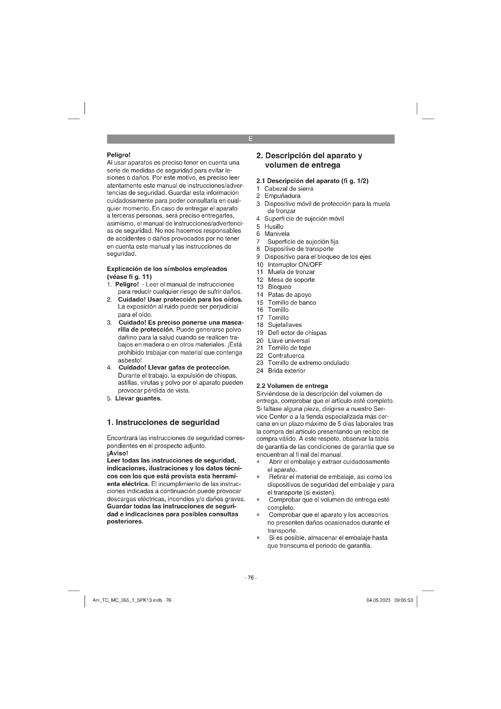 Sirviéndose de la descripción del volumen de entrega, comprobar que el artículo esté completo. Si faltase alguna pieza, dirigirse a nuestro Ser- vice Center o a la tienda especializada más cer- cana en un plazo máximo de 5 días laborales tras la compra del artículo presentando un recibo de compra válido. A este respeto, observar la tabla de garantía de las condiciones de garantía que se encuentran al fi nal del manual.