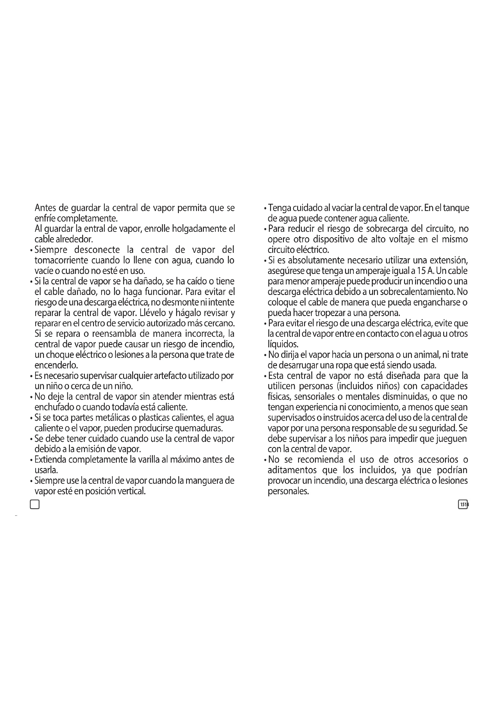 - No permita que el cable toque supercies calientes.1514 Antes de guardar la central de vapor permita que se enfríe completamente. Al guardar la entral de vapor, enrolle holgadamente el cable alrededor.