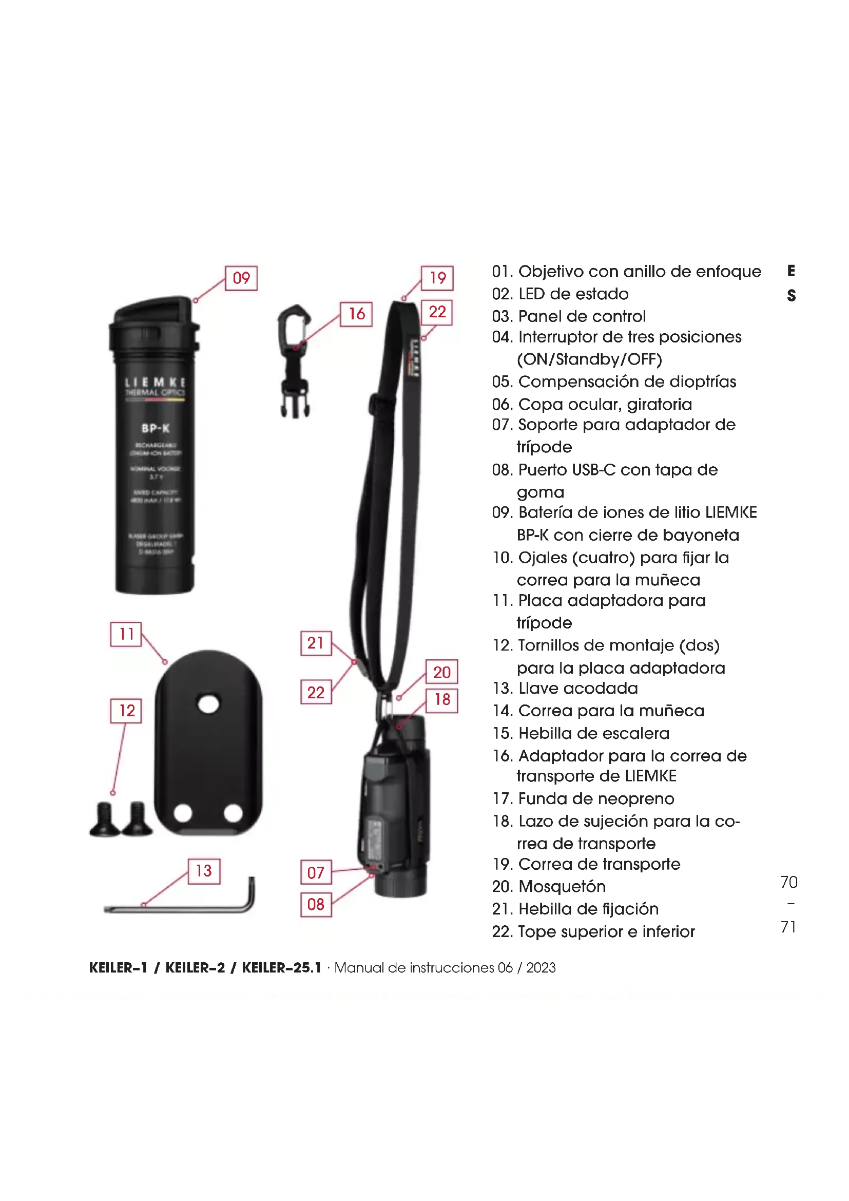 LIEMKE · KEILER-1 / KEILER-2 / KEILER-25.1 · Manual de instrucciones · Última modificación: 06/2023 Observe las condiciones legales de adquisición y uso para ópticos de termografía en su país o región. Con reserva de modificaciones en el diseño, la ejecución técnica, el volumen de suministro y el precio. Para obtener la última versión de este manual de instrucciones visitar: https://liemke.com/medien