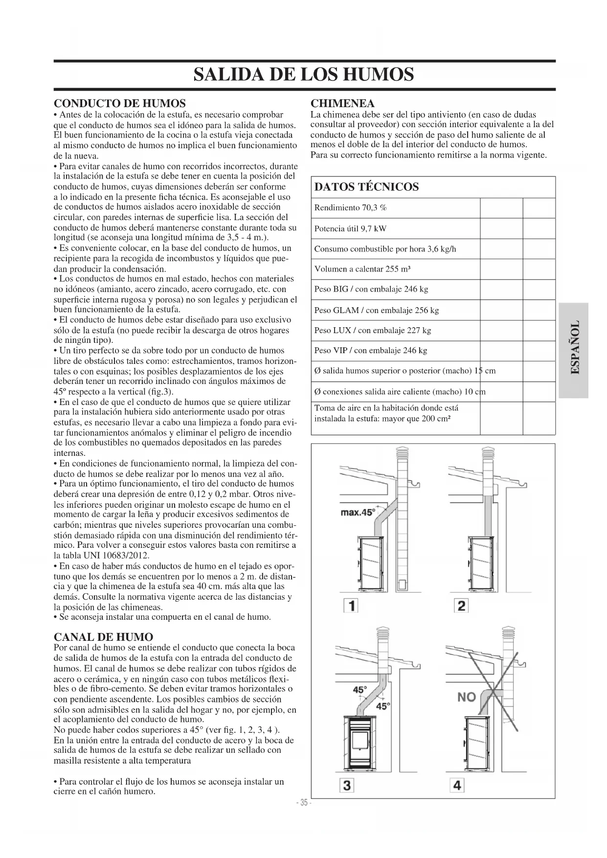 | Mantenimiento | Limpieza regular de la c e1mara de combusti f3n y el cenicero, revisi f3n anual por un profesional. |