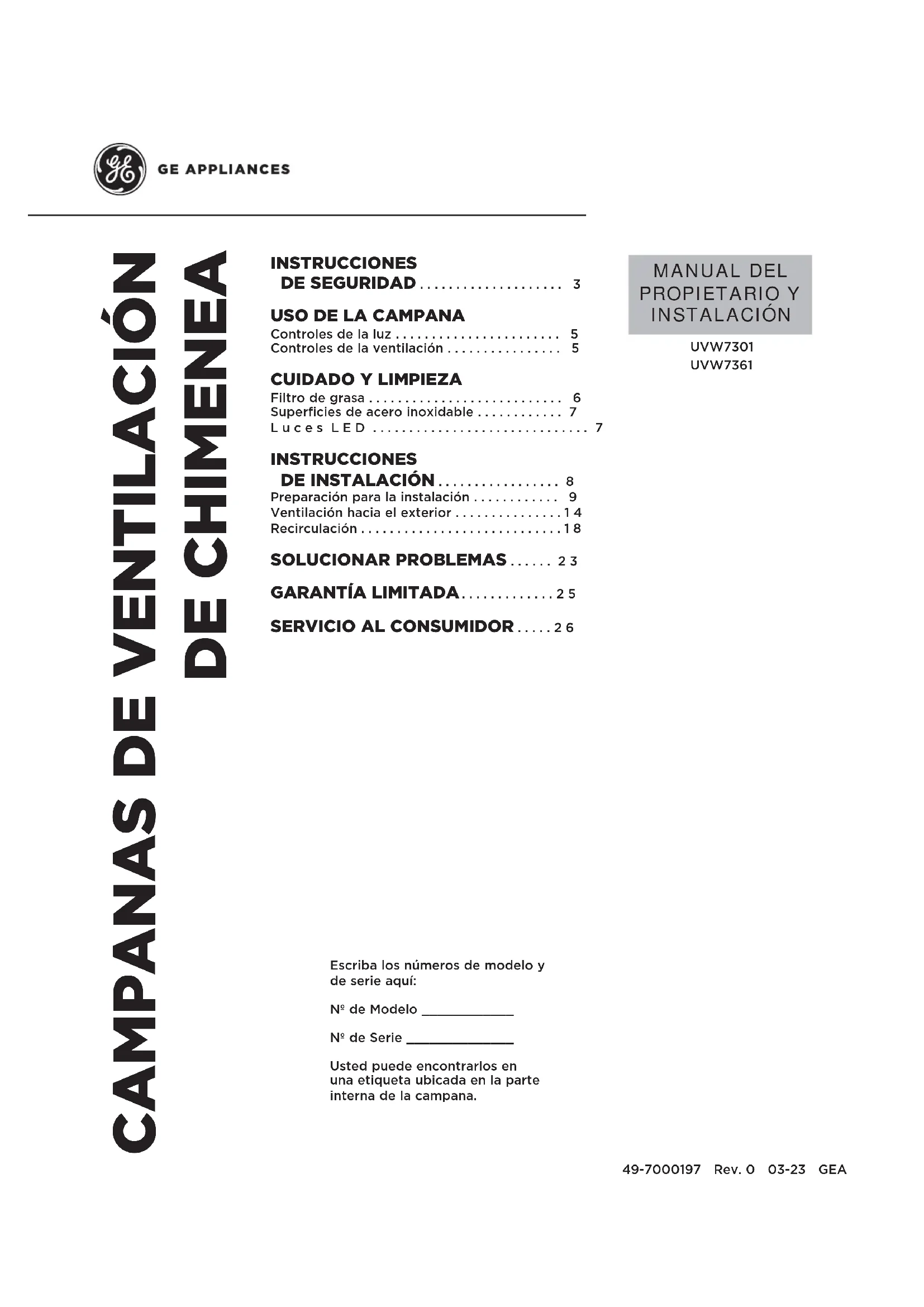 Descarga las instrucciones para tu Capucha en formato PDF gratis! Encuentra tus instrucciones UVW7361SWSS - GE y toma tu dispositivo electrónico nuevamente en la mano. En esta página están publicados todos los documentos necesarios para el uso de su dispositivo. UVW7361SWSS de la marca GE.