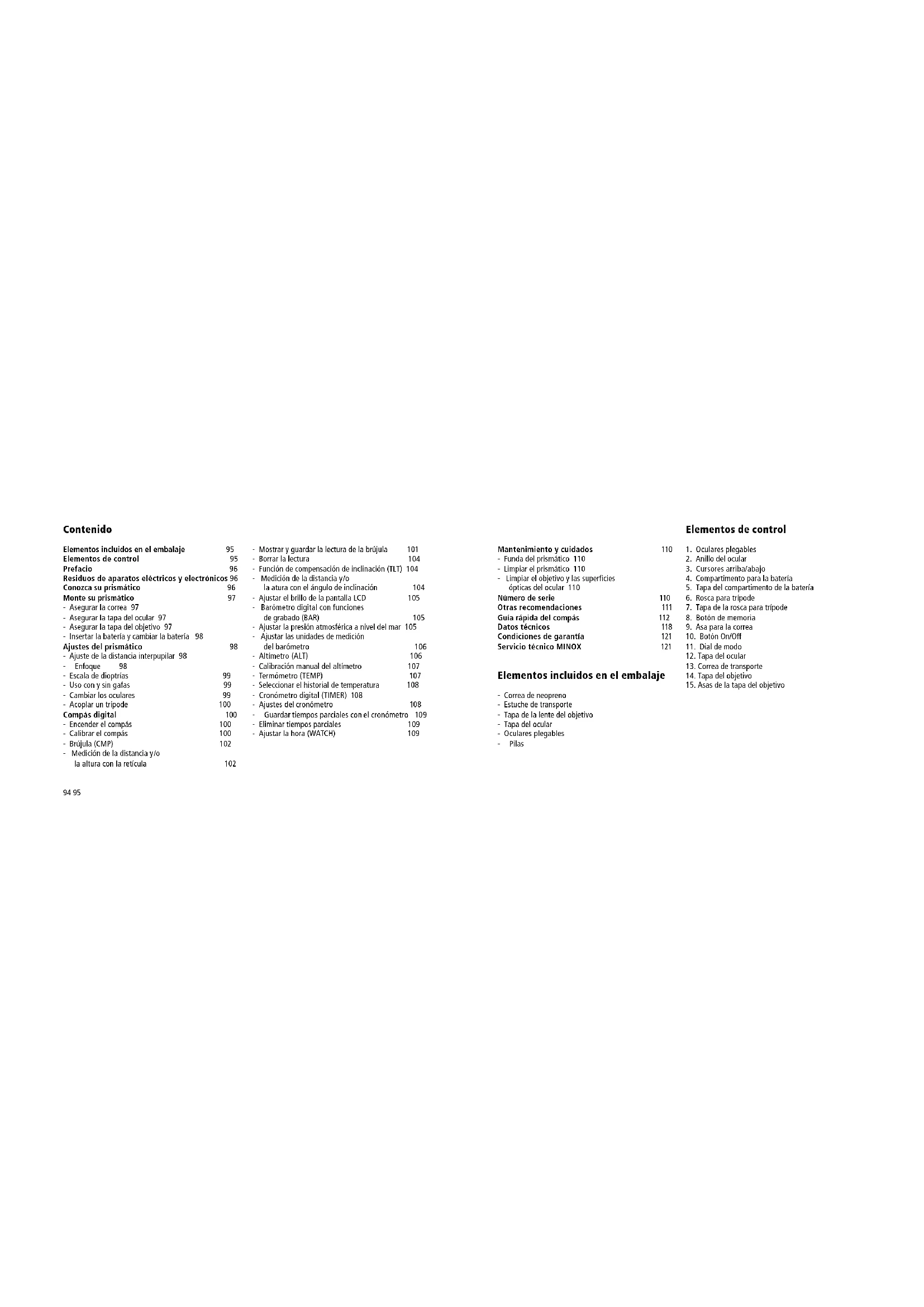 Elementos incluidos en el embalaje 95 - Mostrar y guardar la lectura de la brujula 101