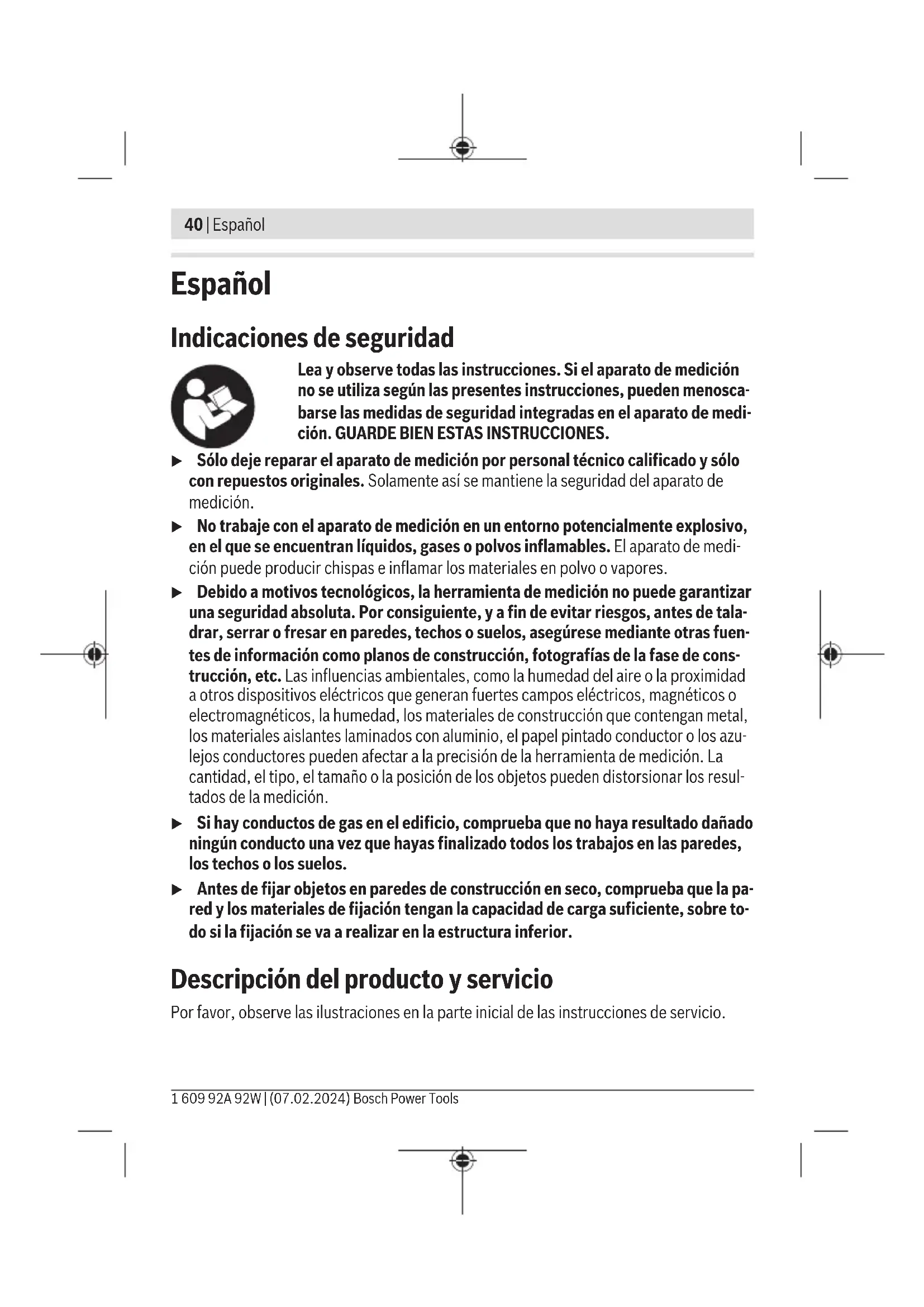 Descarga las instrucciones para tu Detector en formato PDF gratis! Encuentra tus instrucciones GMS 10023 Professional - BOSCH y toma tu dispositivo electrónico nuevamente en la mano. En esta página están publicados todos los documentos necesarios para el uso de su dispositivo. GMS 10023 Professional de la marca BOSCH.