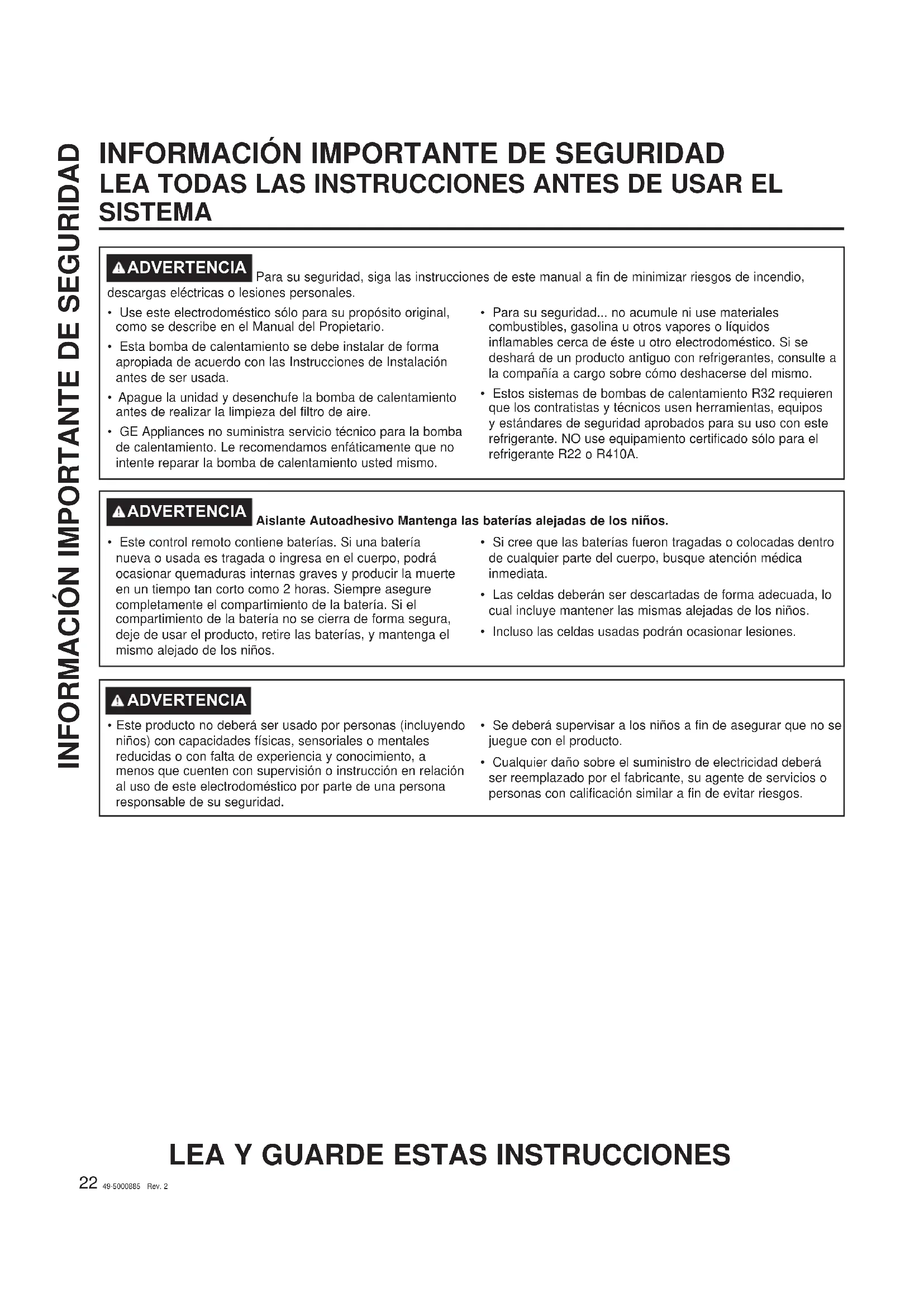 INFORMACIÓN IMPORTANTE DE SEGURIDAD LEA TODAS LAS INSTRUCCIONES ANTES DE USAR EL SISTEMA
