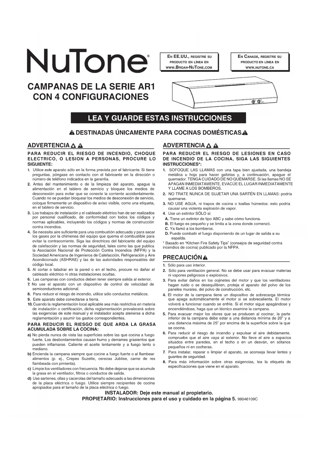 Descarga las instrucciones para tu Capucha en formato PDF gratis! Encuentra tus instrucciones AR130SS - NuTone y toma tu dispositivo electrónico nuevamente en la mano. En esta página están publicados todos los documentos necesarios para el uso de su dispositivo. AR130SS de la marca NuTone.