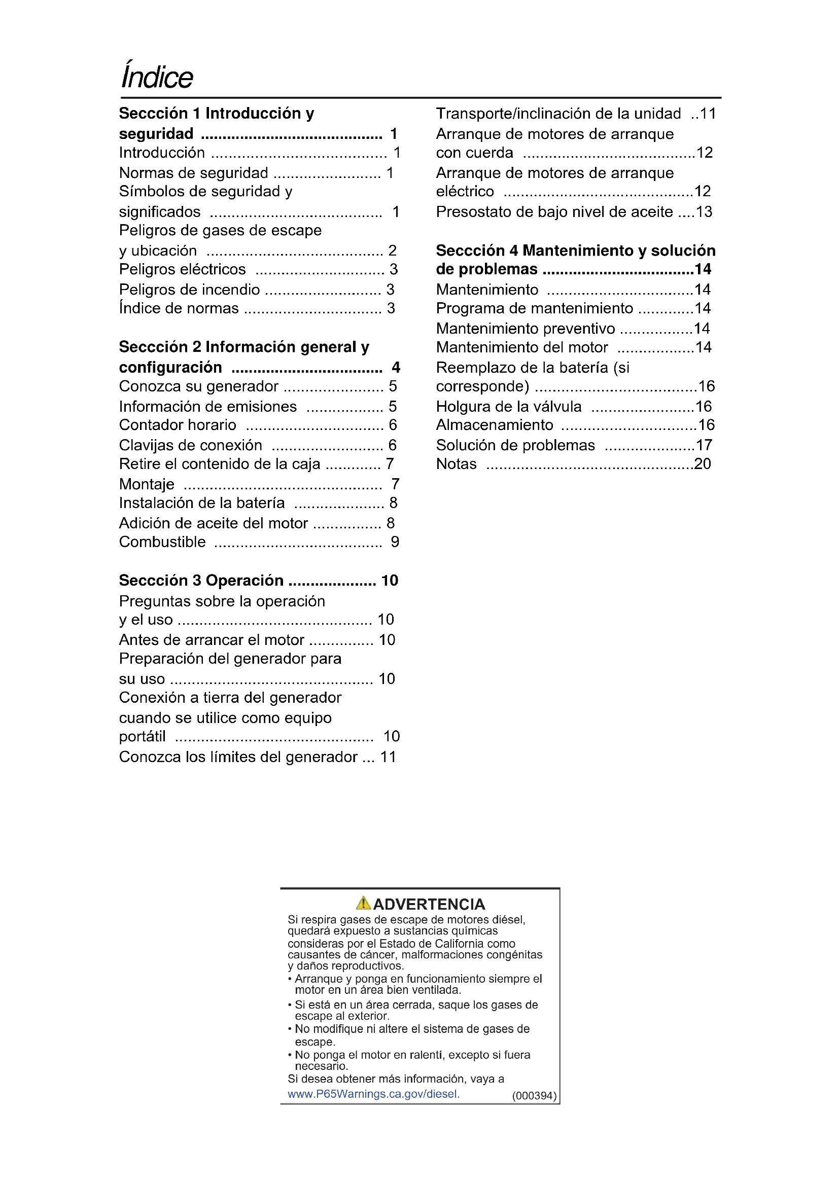 Si desea obtener más información, vaya a www.P65Warnings.ca.gov/diesel. (000394)
