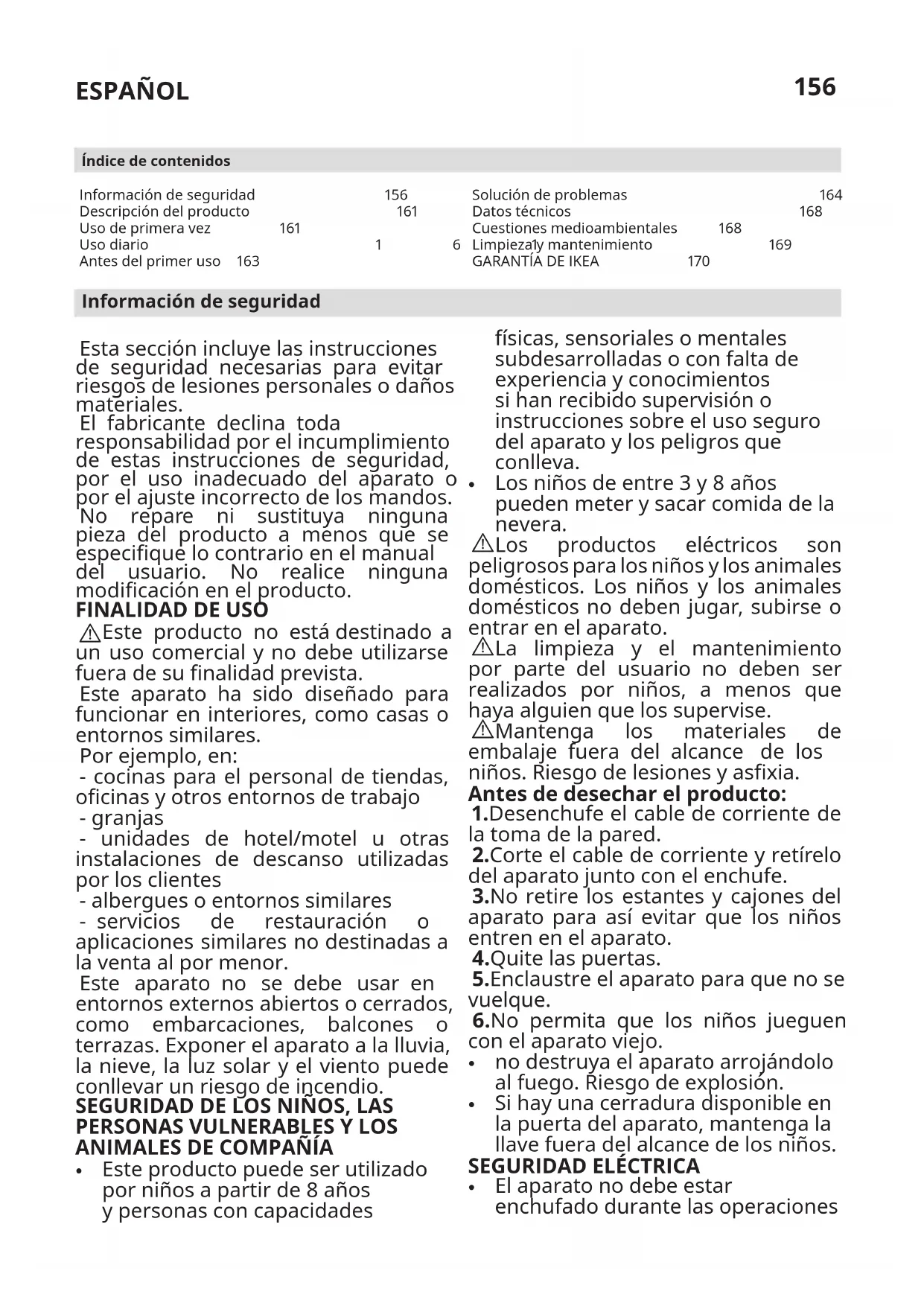 - No obstante, si un Proveedor de servicios designado por IKEA o su socio de servicios autorizado repara o sustituye el aparato en virtud de los términos de esta garantía, el Proveedor de servicios designado o su socio de servicios autorizado reinstalará el aparato ESPAÑOL 10 Para poder descargar la versión completa, visite www.ikea.comESPAÑOL 171 ESPAÑOL reparado o instalará la sustitución, si fuera necesario.