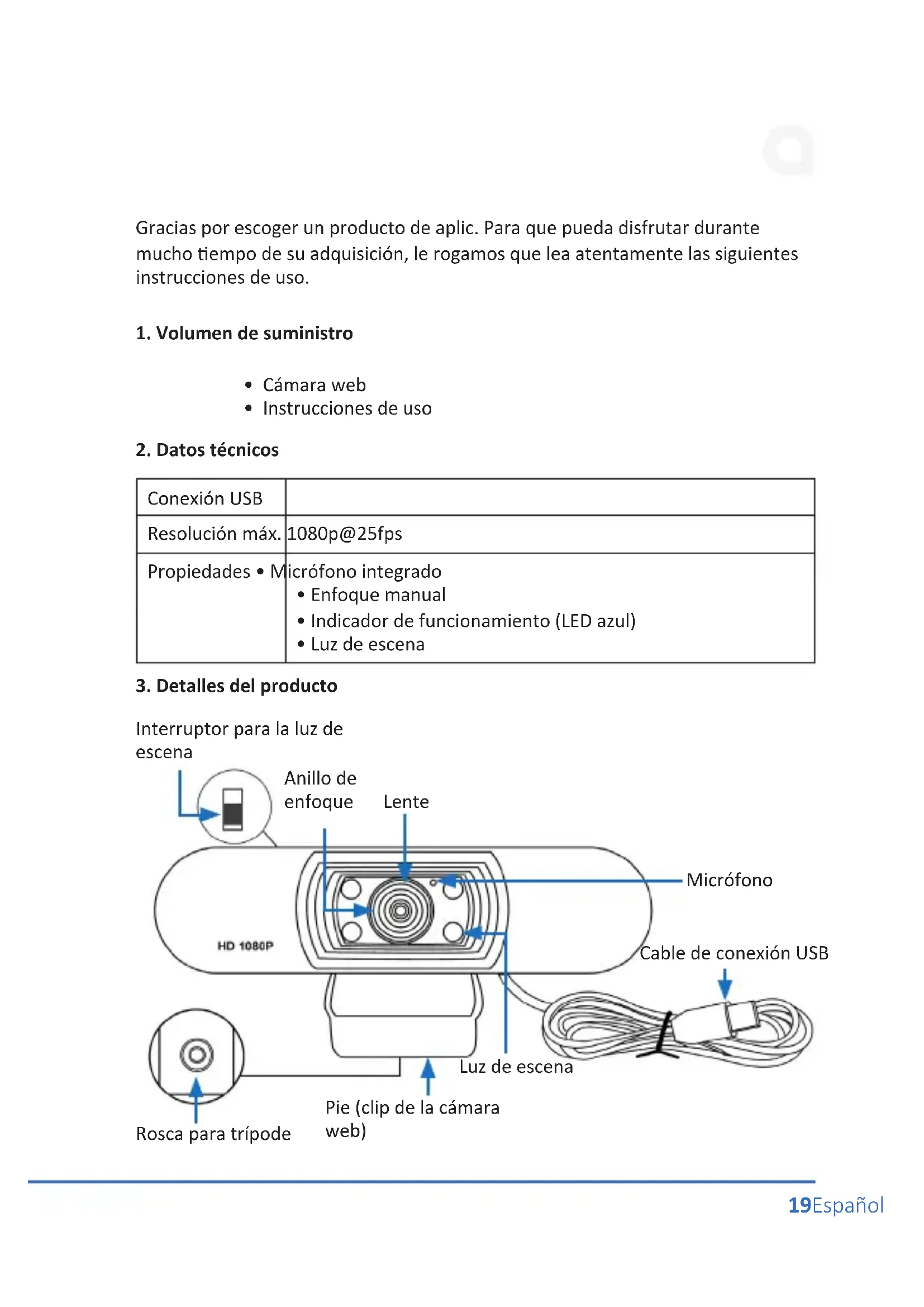 304575 - Cámara web Aplic - Manual de uso y guía de instrucciones gratis