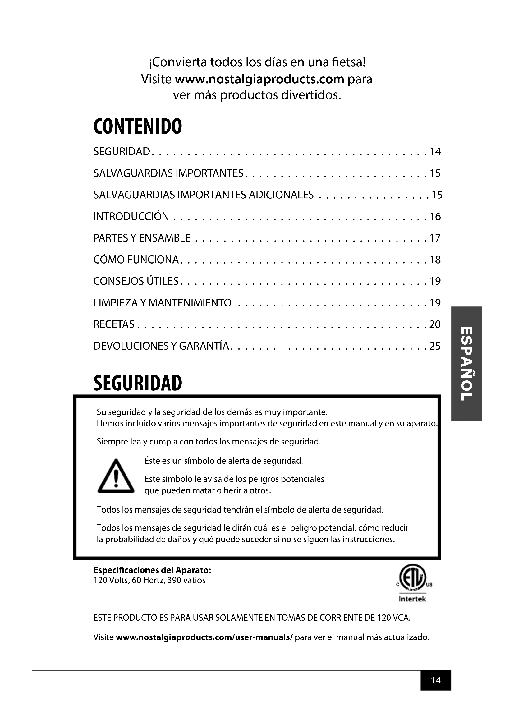 Para Obtener más información, visitenos en linea en www.nostalgiaproducts.com.