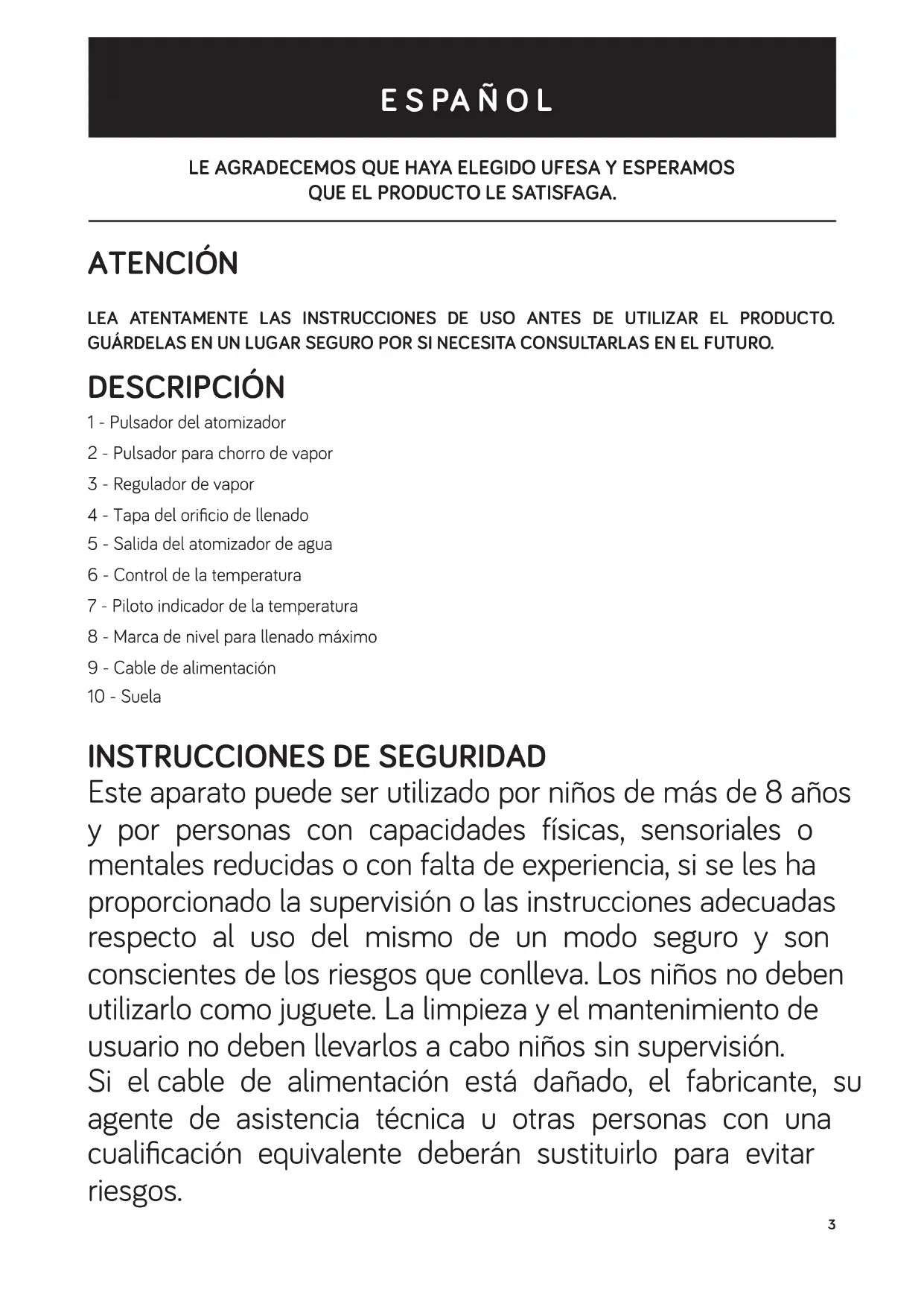 Encuentra gratis el manual del aparato Steam Tech 2400 UFESA en formato PDF.