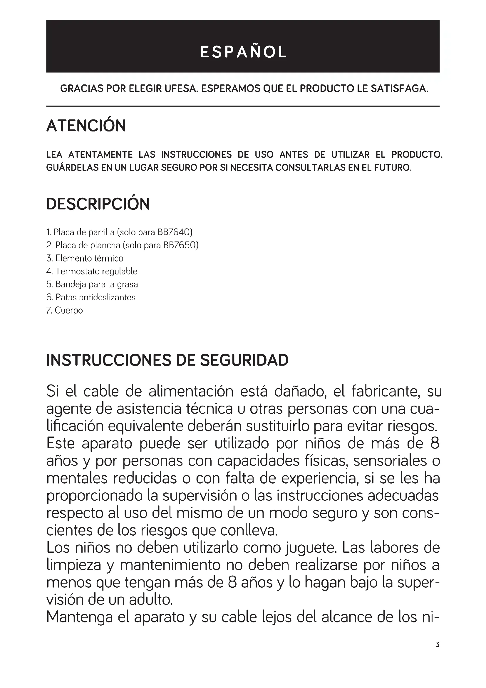MANUAL DE USUARIO BB7650 UFESA
