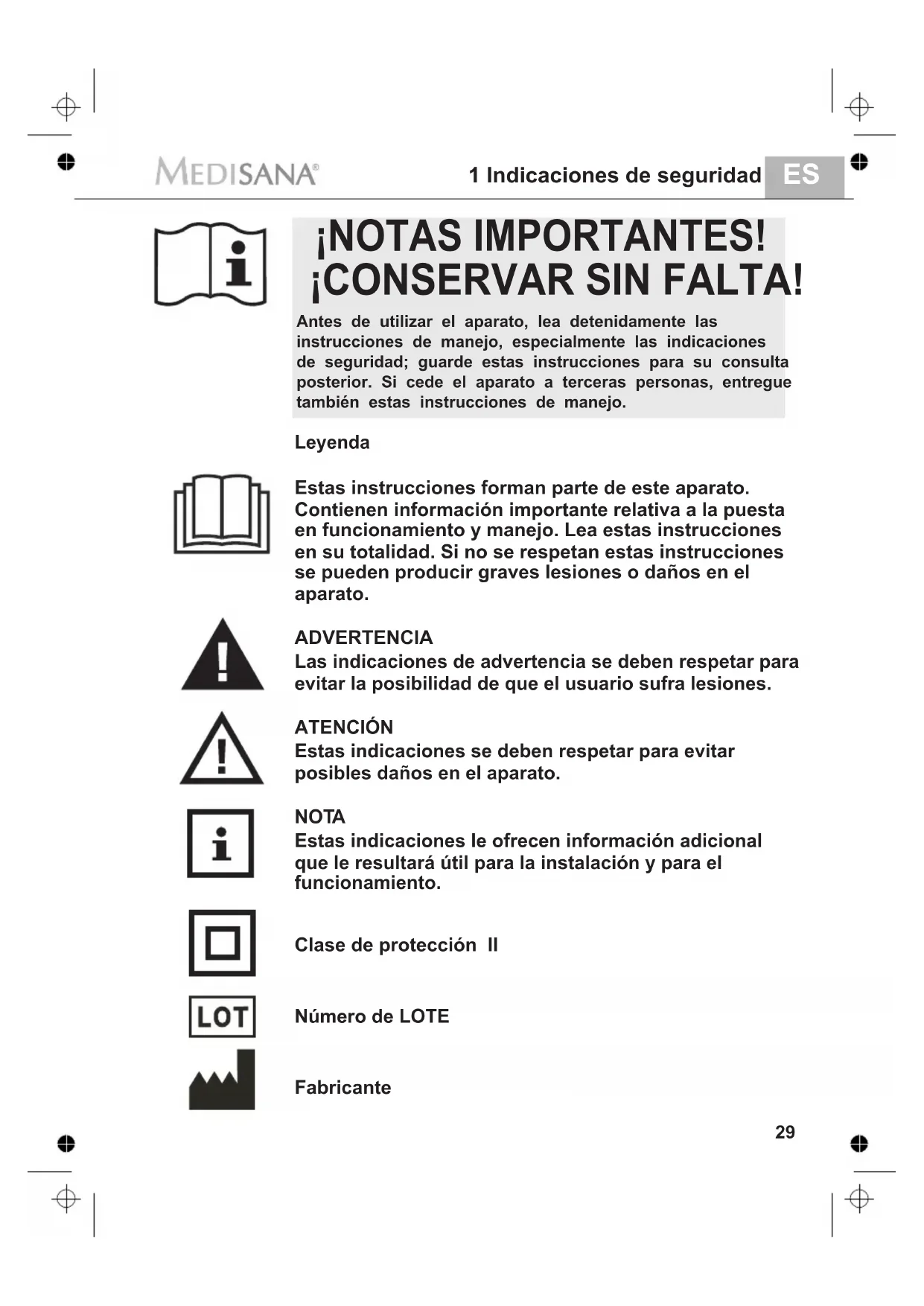 1 Indicaciones de seguridad / 2 AplicacionMEDISANA