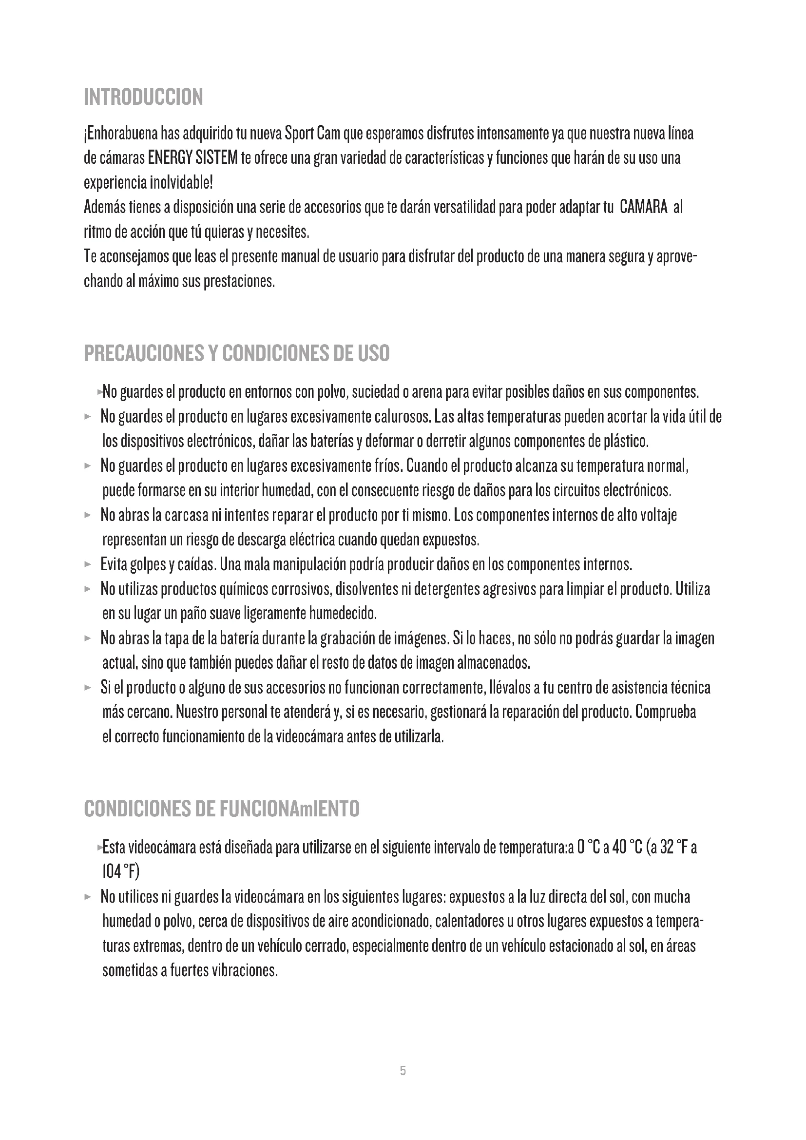 MANUAL DE USUARIO Sport Cam Pro ENERGY SISTEM