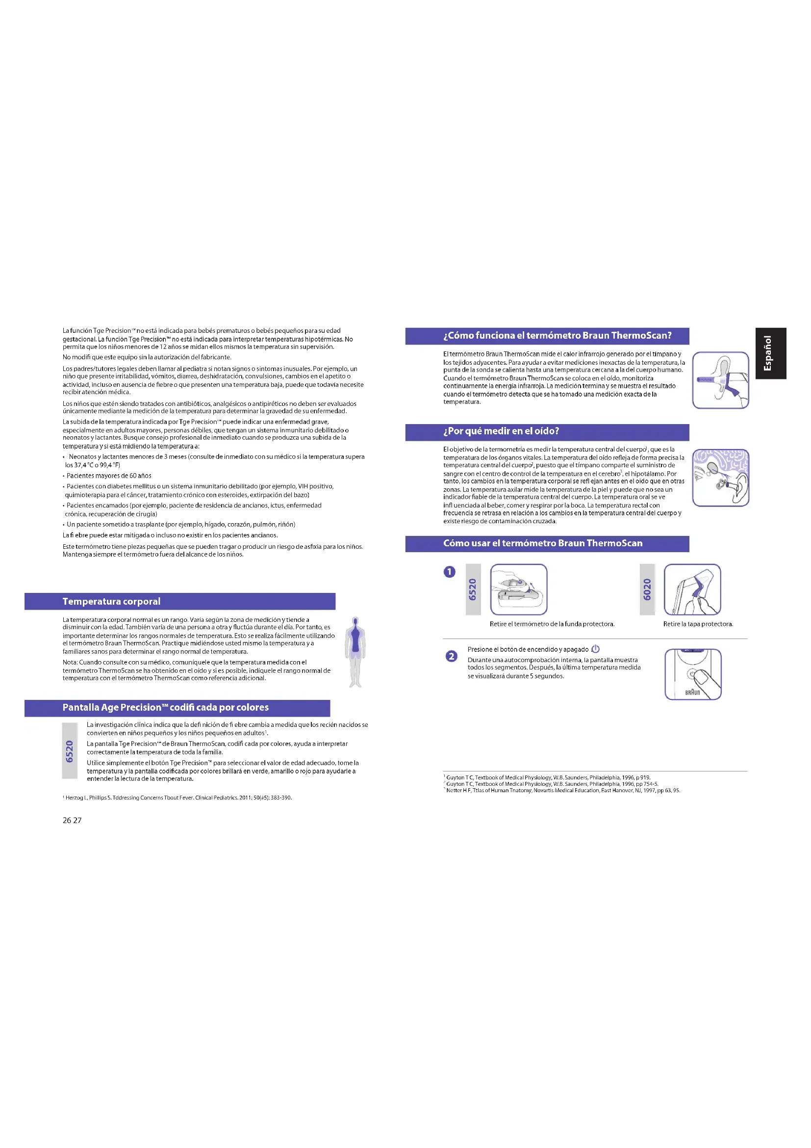 Note: Cuando consulte con sumedical, comuniqueque la temperatura medida con el termometro ThermoScan se ha obtenido en el oido y si es possible, indicale el rango normal de temperature con el termometro ThermoScan como referencia adicional.