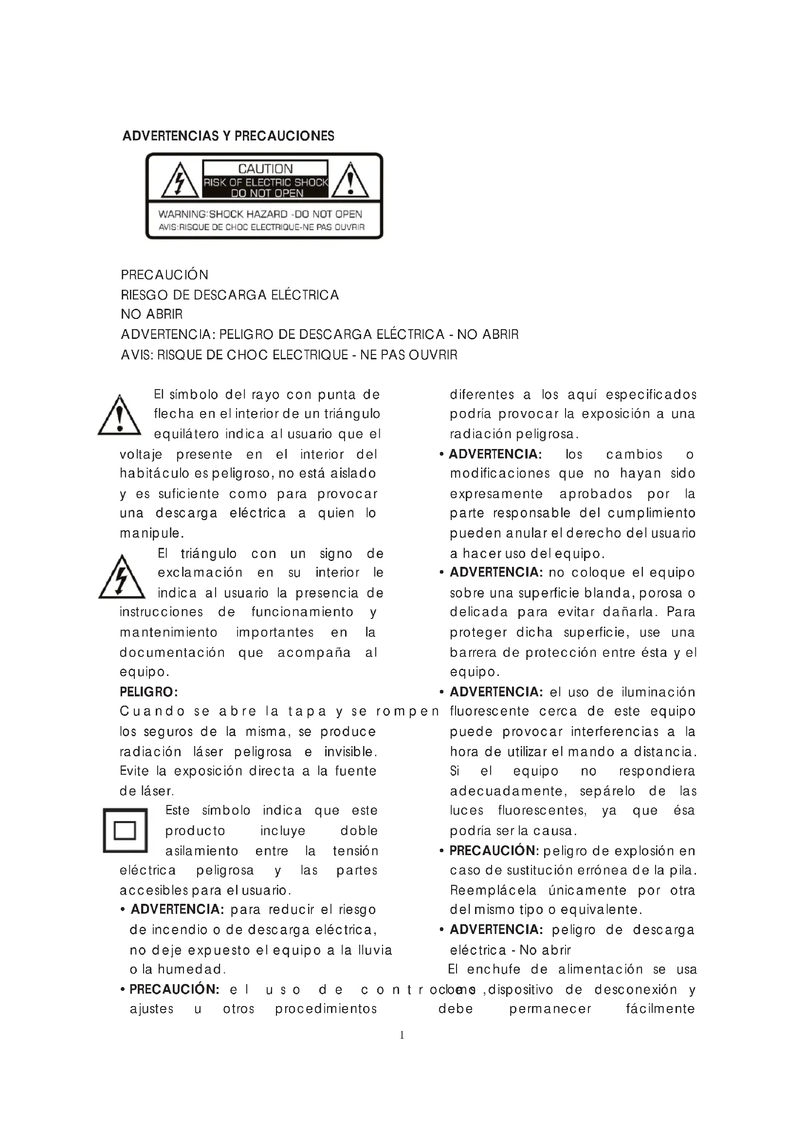 CAUTION RISK OF ELECTRIC SHOCK DO NOT OPEN WARNING:SHOCK HAZARD -DO NOT OPEN AVIS:RISQUE DE CHOC ELECTRIQUE-NE PAS OUVRIRPRECAUCIÓN